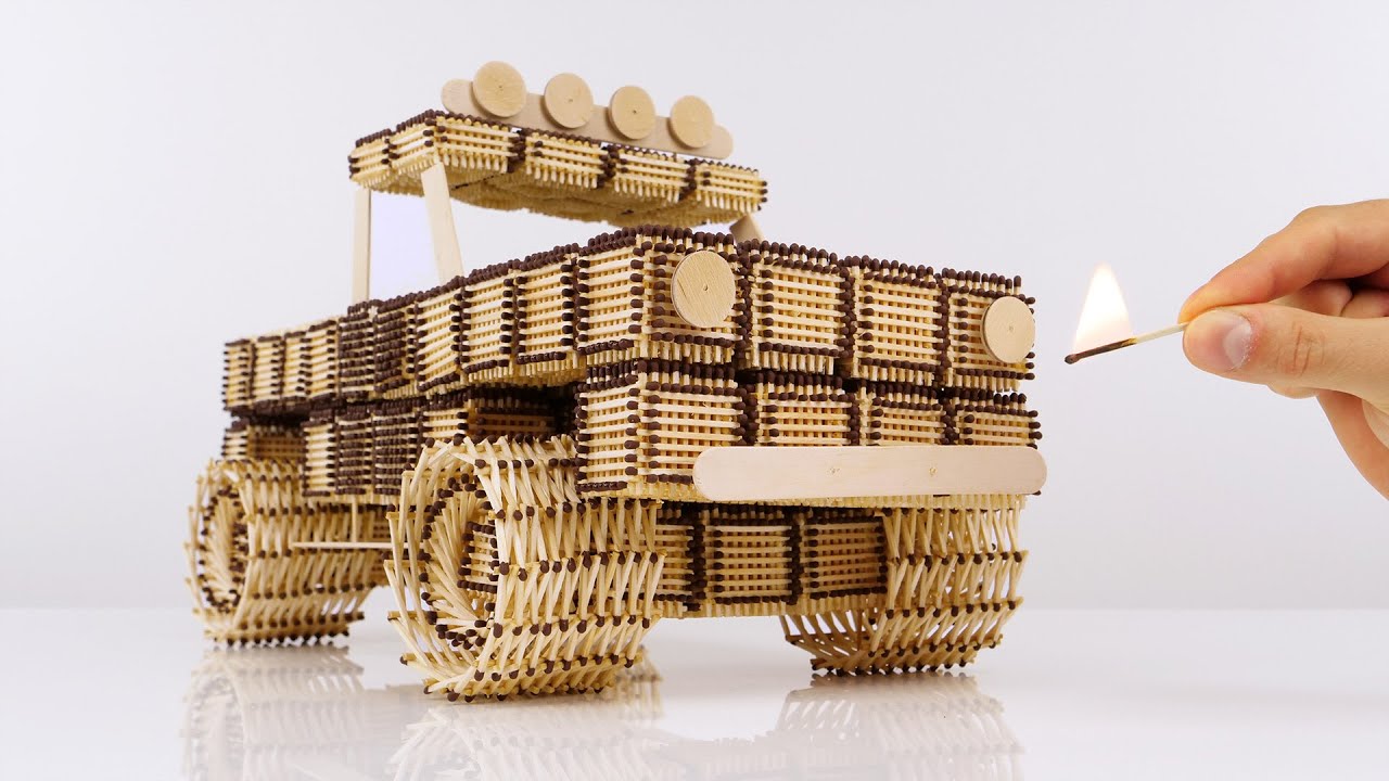 DIY Pickup Truck from Matches Without Glue In today's video I want to show you howto make pickup truck from matches without glue! This model contains: - 4x small cubes: 1:50-2:38 - https://youtu.be/riP2AlJ82us - 4x small wheels - 4x big wheels 0:21-1:36 - https://youtu.be/ZOf2DUdavZA - 8x flat cubes 2:12-3:27 - https://youtu.be/ZOf2DUdavZA - 70x classic cubes It's a lot of work so, hope you enjoy this video! If you like this video don't forget to subsctibe :) Music: "Hackbeat" Kevin MacLeod. Creative Commons Attribution (https://creativecommons.org/licenses/by/4.0/). http://incompetech.com/music/royalty-free/index.html?isrc=USUAN1100805. http://incompetech.com/ Production Music courtesy of Epidemic Sound www.epidemicsound.com
