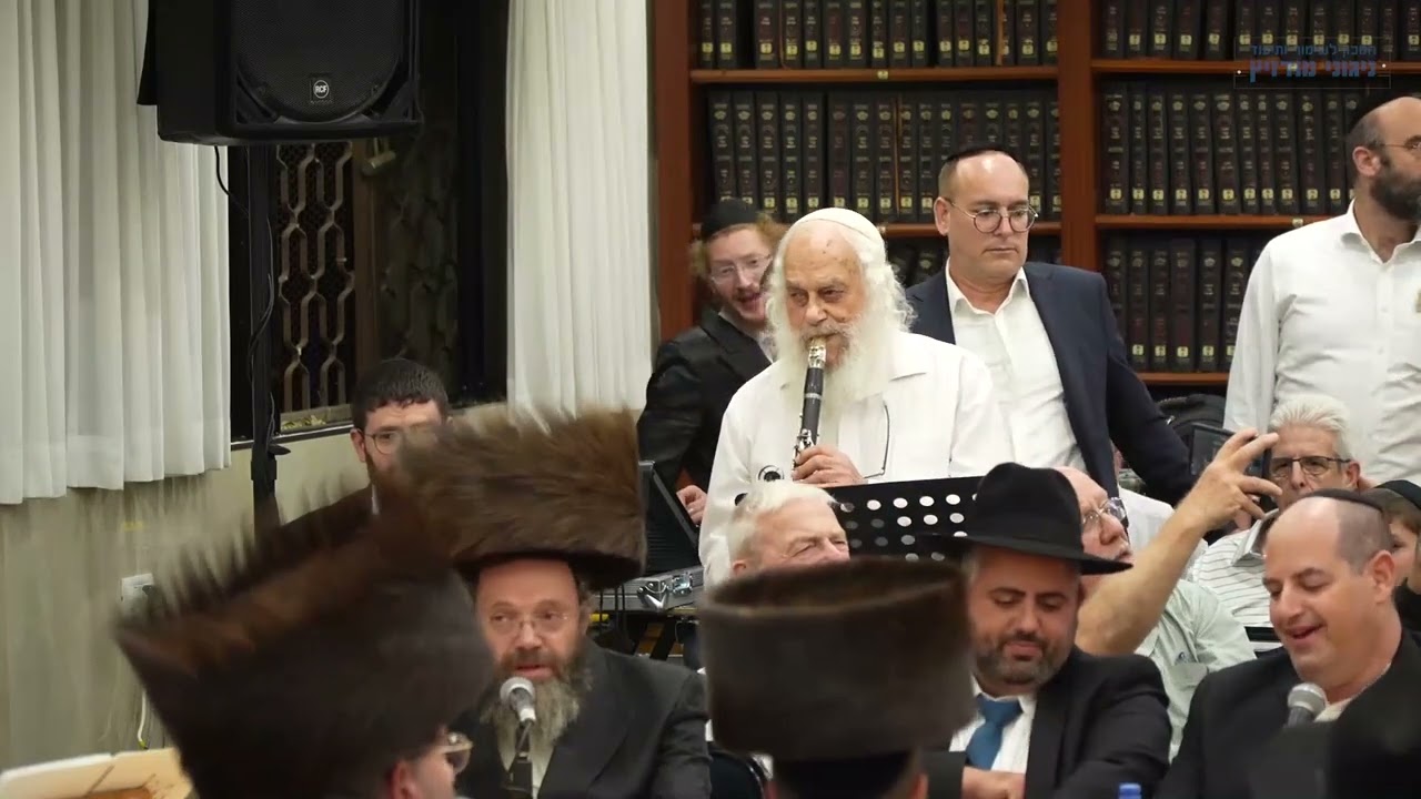 מתוך מלוה מלכה לזכרו של הרה"ח ר' בן ציון שנקר ז"ל - חשון תשפ"ו בבית בגנו בבני ברק. הופק ע"י עו"ד דוד זעירא והמכון לשימור ותיעוד ניגוני מודז'יץ ליווי מוזיקאלי: אקורדיון - המעבד ר' משה מונה רוזנבלום, קלידים - נאור גוטליב, קלרינט - ר' מוסא ברלין. צילום: ישראל כהן הפקות וידאו