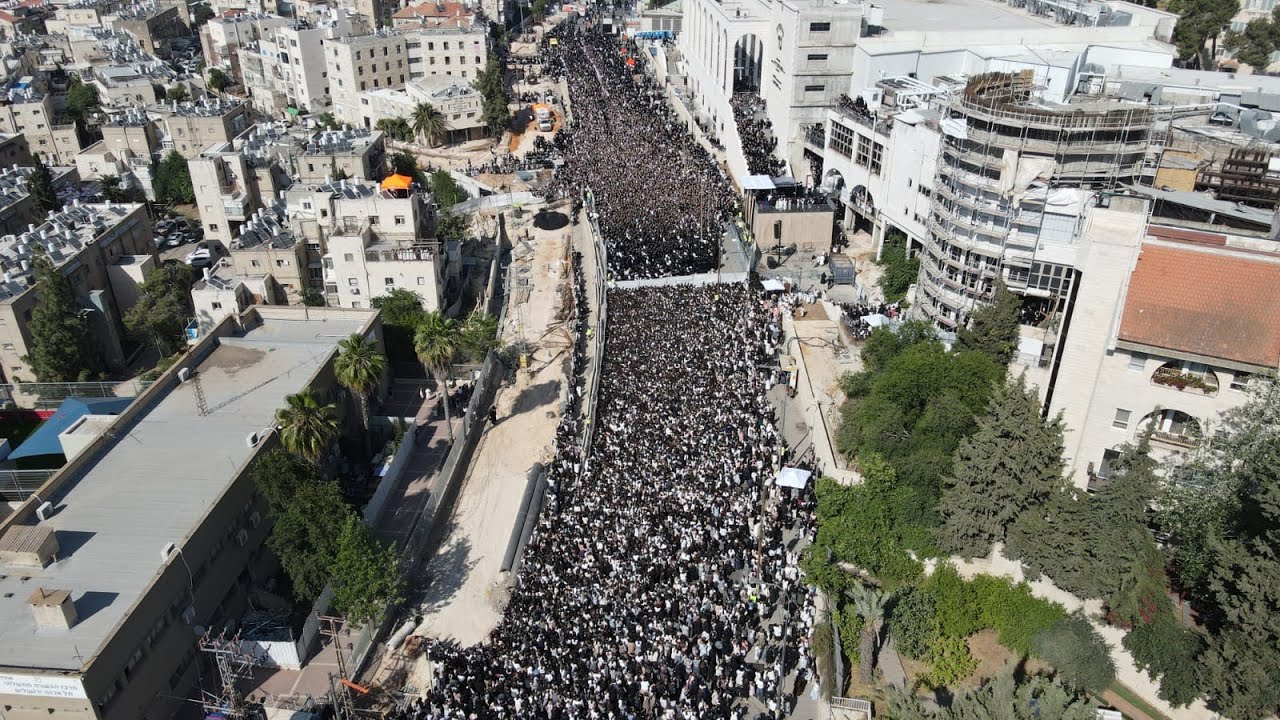 Subscribe to https://www.youtube.com/@refaelyigal Tens of thousands of Gerrer Chassidim attended a massive Chasunah on Tuesday evening of the Gerrer Rebbe’s granddaughter. The Chausunah is taking place in the large Gerrer Beis Medrash on Rechov Yirmiyahu. The kallah is the daughter of the Rebbe’s daughter and son-in-law HaRav Chaim Yehoshua Schorr, Rosh Yeshivas Chiddushei HaRim in Bnei Brak and the chasan is Yisrael Bergman, the son of Rav Menashe Bergman of Tel Aviv. The chuppah took place at 4:15 on Rechov Yirmiyahu and the seudah and dancing are taking place in the Gerrer Beis Medrash. למעלה מרבבת חסידים רקדו לאחר החופה בשמחת החתונה לנכדת האדמו"ר מגור, בת לחתנו הגה"ח רבי חיים יהושע שארר, ראש ישיבת חידושי הרי"ם בבני ברק עם החתן ישראל ברגמן, בן הרב מנשה ברגמן מתל אביב. החופה והסעודה - בבית המדרש הגדול בירושלים. אירועי השמחה התחילו בצהריים באירוע "קינדער טיש" המיועד לילדי החסידות שאינם משתתפים בשמחת החתונה. לאחר מכן נערך טקס התנאים בביתו של הרבי שם כובד הגרחי"א לנדא רבה של בני ברק, ולאחר מכן התקיים מעמד הקבלת פנים המסורתי עם בחורי הישיבות שכנהוג בגור אינם משתתפים במעמד החופה. במעמד החופה נעמדו קהל הרבבות על פני רחוב ירמיהו, גברים לעבר רח' צפניה ונשים לעבר רח' בריינדיס. הציר עצמו נחסם לתנועה. במעמד החופה כובד האדמו"ר מגור בסידור קידושין, בקריאת הכתובה הגרי"מ לאו, וכן עמוד ההוראה הגר"י זילברשטיין. הראש"ל הגר"י יוסף והאדמו"רים מבאיאן, מודז'ץ׳ ואלכסנדר כובדו בברכות. בניגוד לנהוג עד היום, הפעם לא עברו כלל חסידי גור לברכת מזל טוב אצל הרבי, מעמד שהיה אורך כשלוש שעות, וה"אדורך גיין" המסורתי צומצם לאלה שלא משתתפים בחתונה וכן משפחת האדמו"ר, נכדיו ואחייניו ונכדי האדמו"רים הקודמים לבית גור ותושבי חו"ל.