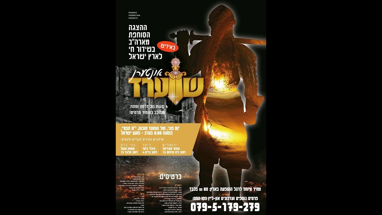שחרית בשומרי שבת ומעריב באיצקוביץ? זה אפשרי! השנה תשתתפו בהצגה היהודית הגדולה בעולם המתקיימת בארצות הברית, בלי לעלות על מטוס. כולנו שמענו, ראינו, התרגשנו, עם ההצגות הדרמטיות של אונטערן חבריא. אז זהו. השנה זה קורה בארץ ובגדול... למי מאיתנו שעוד לא יודעים אידיש שוטף, כדאי להשתפשף ומהר... ההצגה לכל המשפחה, גברים נשים וילדים, במוקדים נפרדים. אולמות מפוארים וממוזגים, בירושלים, בני ברק וביתר. כל העדכונים והפרטים, ראיונות לוהטים עם השחקנים וקטעים מצחיקים, בקו החם: 079-5-179-279. חייגו עכשיו והבטיחו את מקומכם. יח"צ : First Class - מחלקה ראשונה ●○●○●○●○●○●○●○●○●●○●○●○●○●●○●○●○●○●●○●○●○●○●●○●○● רוצים גם אתם להיות ב - first class של המוזיקה ? כשתרשמו תתרשמו - https://www.youtube.com/channel/UCnw-FE5pN_Xj3g0kYqUOsvw?view_as=subscriber ה-First Class של המוזיקה החסידית