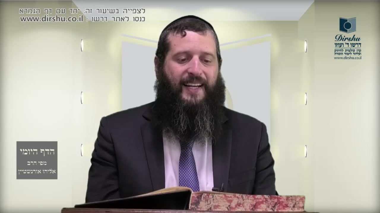 דף היומי - שיעורי הדף היומי בגמרא תלמוד בבלי מסכת ביצה מבית "דרשו" עם הרב אליהו אורנשטיין שליט"א, הדף יומי קצר וישיבתי לשיעורים נוספים באתר דרשו: http://www.dirshu.co.il/
