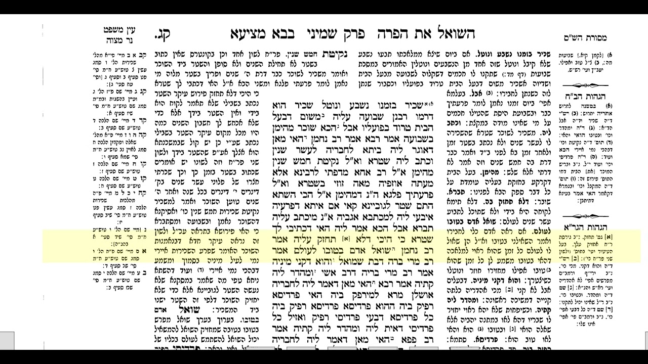 צפייה ישירה ב-YouTubeדף היומי בבא מציעא דף קג