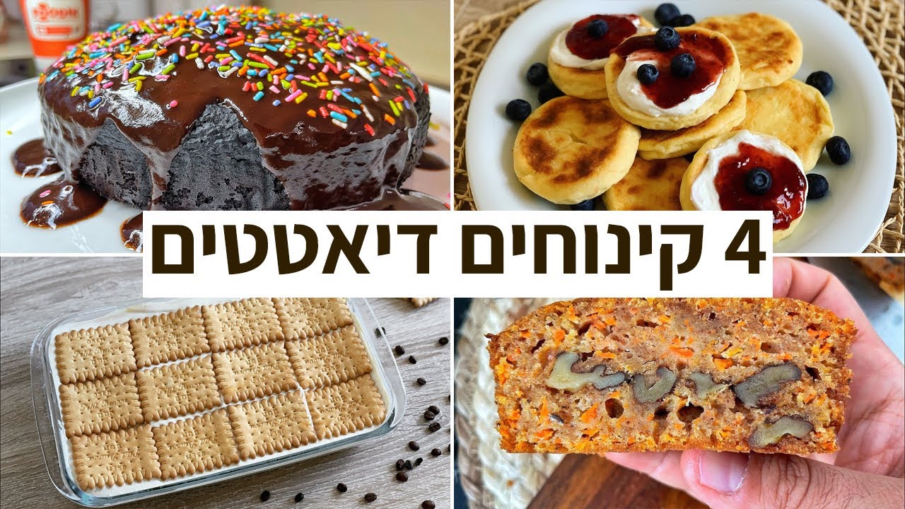 פודיק: 4 קינוחים דיאטטים - מתכונים דיאטטים ללא תוספת סוכר - 3 עוגות + סירניקי - שחר חן - Foodik