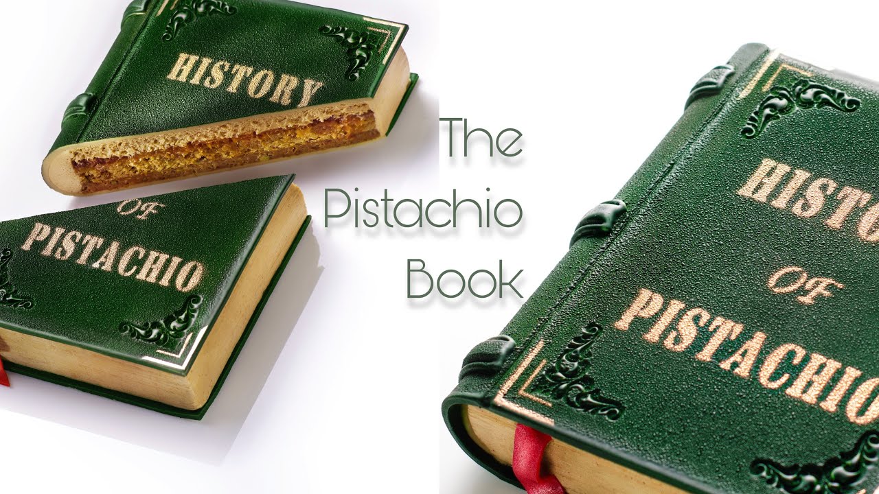 This delicious book in disguise is all about pistachio! It is composed with a first crunchy layer of pistachio recomposed streusel, a moist pistachio sponge, a roasted apricot compote and a rich pistachio mousse. Even the cover of the book is made with a pistachio based modeling chocolate.
