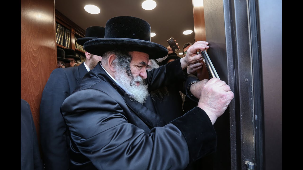 הרבי מויז'ניץ במעמד קביעת מזוזה ל'היכל התורה' במירון | Viznitz Rebbe