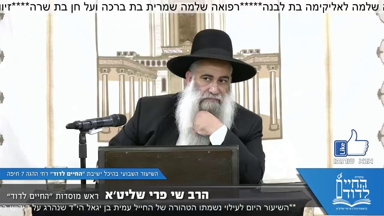 🕊️ הרב ישי פרי שליט״א |השיעור השבועי | פרש תצוה תשפ״ו