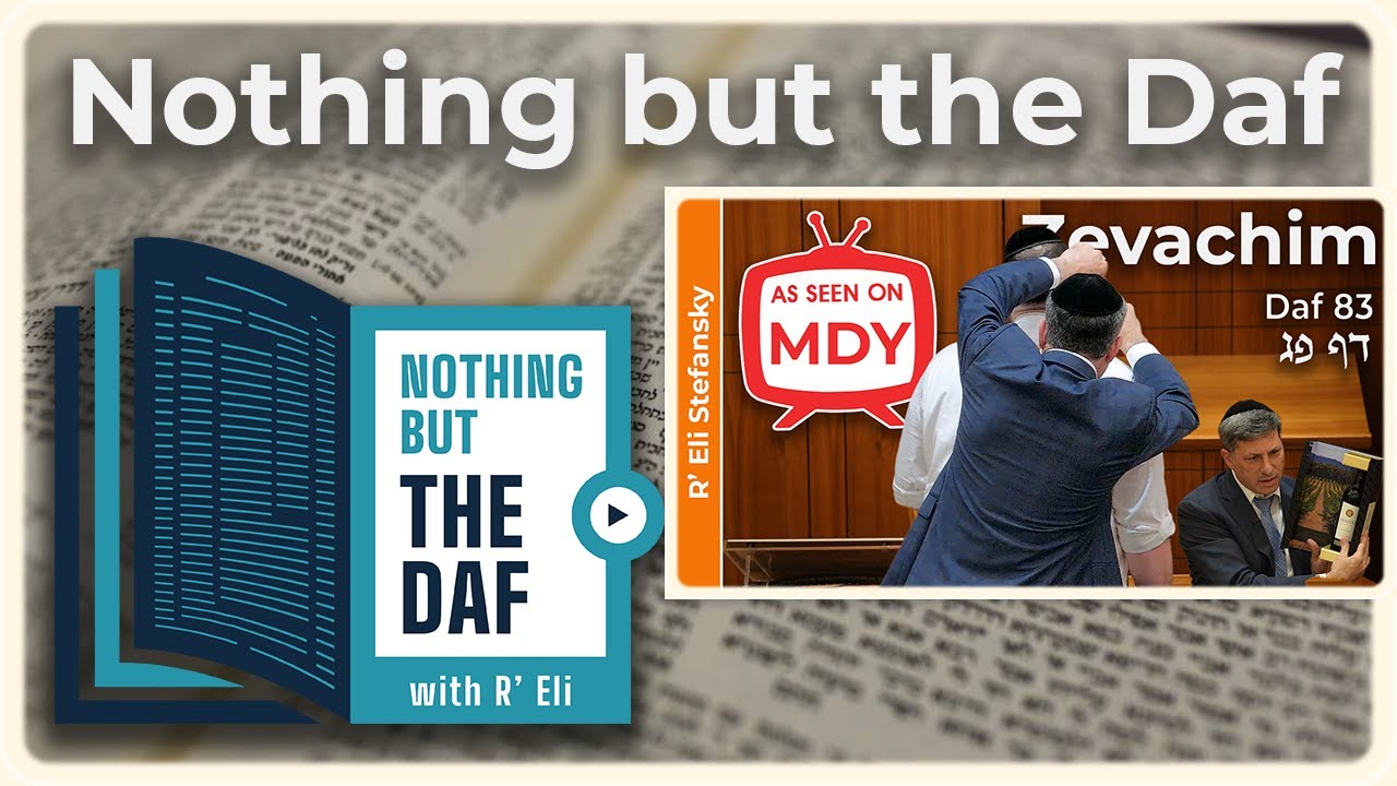 00:00 - Good Voch 00:10 - 82B 13:34 - 83A 24:00 - 83B 28:08 - Have a Wonderful Week! Quiz - http://Kahoot.MDYdaf.com -- To receive the "Nothing but the Daf" Chazarah Shiur daily via WhatsApp: https://chat.whatsapp.com/G6KFNRIIXUBKCpeX0AXW0m MDY presents: "Nothing but the Daf", R’ Eli Stefansky’s MDY (Mercaz Daf Yomi) Shiur in a concise format - all the clarity of the full daf Shiur, with Reb Eli's unique charts and visual aids, without any extras (emails, stories etc.) Perfect for Chazarah or anyone who wants a quick, focused Daf. -- Thank You For Learning The Daf Yomi Today With Us! Please consider Sponsoring our Shiur! http://MDYsponsor.com/ _________________________________ Learn the Daf Yomi on all the top streaming platforms: Full Daf: 👇Watch us on all the big video Platforms👇 YouTube - https://www.youtube.com/@MercazDafYomi AllDaf - http://alldaf.mdydaf.com Torahanytime - http://tat.mdydaf.com Batorah - http://batorah.com/speakers/1013 👇Listen to us on all the big Podcast platforms with the link below👇 https://mercazdafyomi.com/links 👇Download and Listen to us on the go👇 Torahanytime - http://tat.mdydaf.com Spotify - https://podcast.mdydaf.com Telegram - http://tf.mdydaf.com Batorah - http://batorah.com/speakers/1013 _________________________________ https://X.com/MercazDafYomi Have a Wonderful Day! Edited by Ariel Leiba #Geshmak_to_do_the_Daf #Zevachim #EliStefansky #mdy #dafyomi