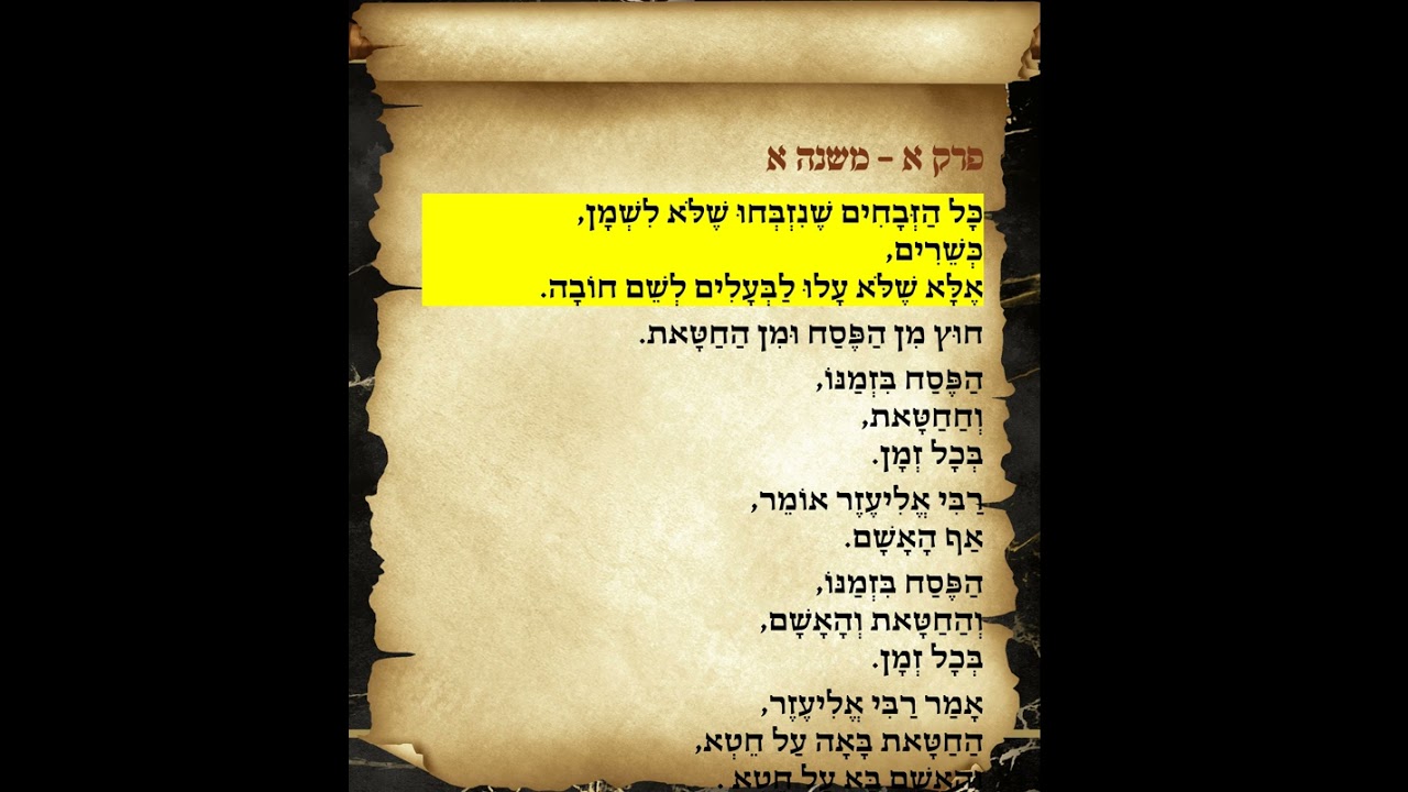 צפייה ישירה ב-YouTubeמשניות זבחים פרק א משנה א