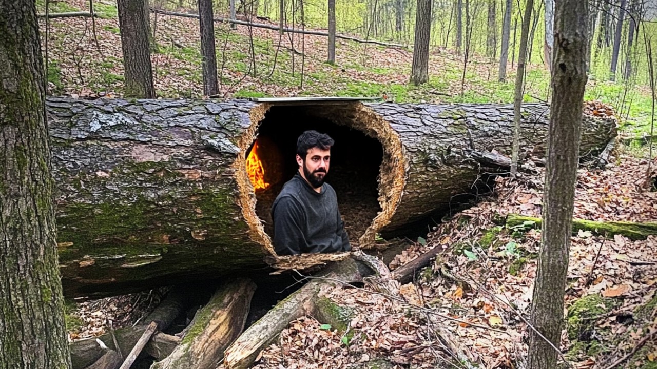 Man Builds SECRET SHELTER Inside Fallen Tree | Solo Survival by @BushcraftHakankarahan