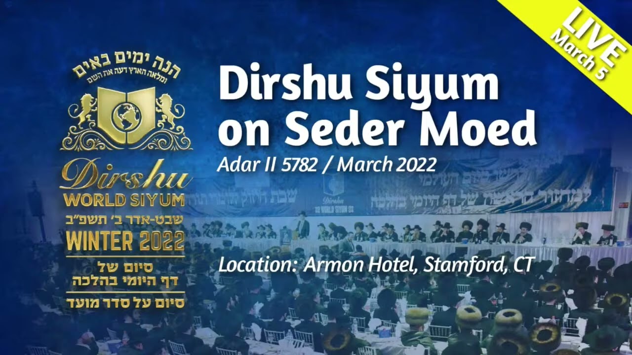 לצפיה באתר דרשו, הכנסו לעמוד המרכזי עם כל העדכונים על אירועי סיום הדף היומי בהלכה מסביב לעולם https://www.dirshu.co.il/ ישמחו השמים, תגל הארץ, ינעימו את האירוע מיטב המקהלות לזמר להודות ולהלל על שמחת והרבצת התורה מסביב לעולם דרשו | דף היומי | דף היומי בהלכה | נבחני דרשו | מבחנים ומוקדי דרשו | מסלולי לימוד דרשו | סיום השס | סיום הדף היומי בהלכה | שיעור משנה ברורה | שיעורי גמרא | פרשת שבוע | לקראת שבת | דרשו השם ועוזו | Experience the Siyum on the Machzor Sheini of Daf HaYomi B’Halacha! A comprehensive livestream production featuring inspirational addresses from Senior Gedolei Yisroel, inspiring niggunim, and a monumental display of Kavod HaTorah!