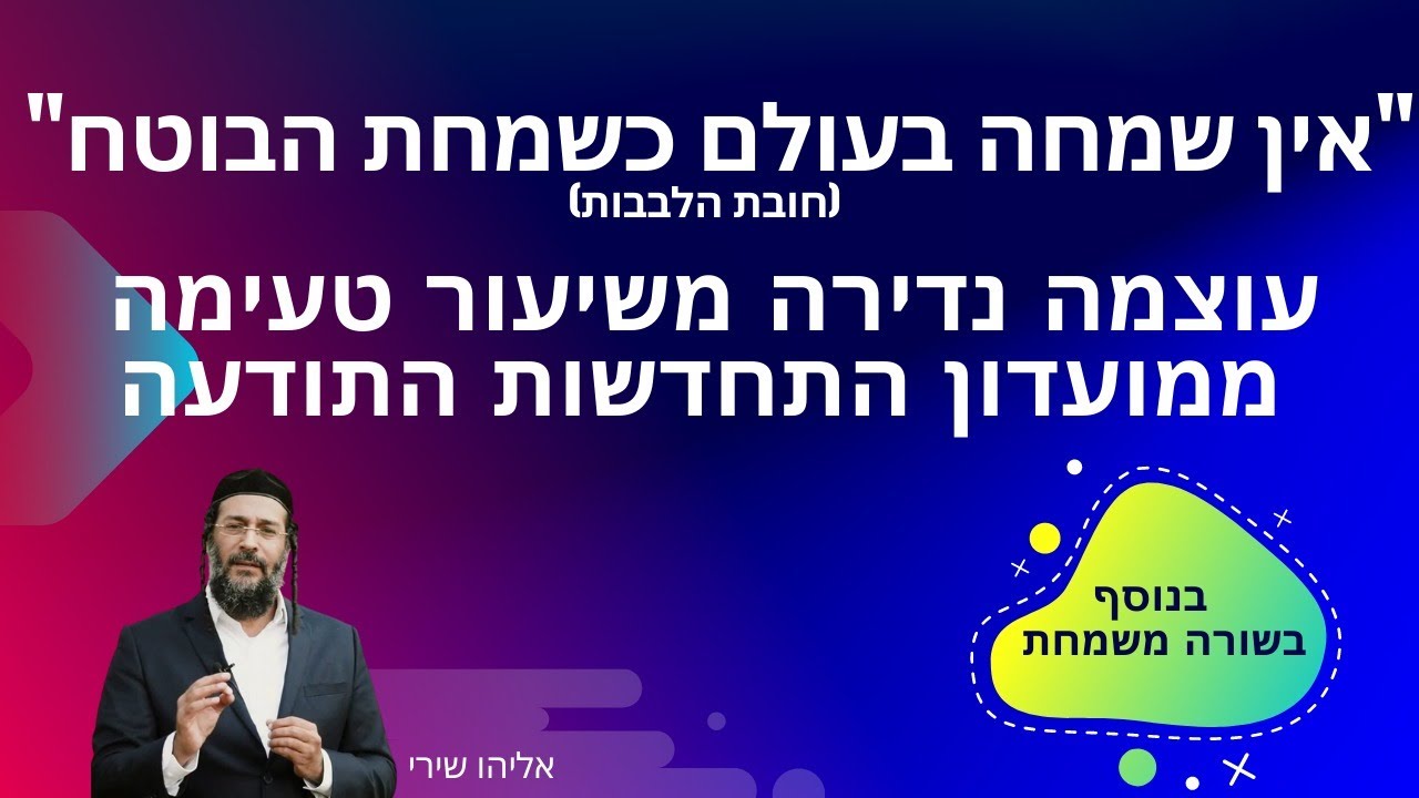 "אין שמחה בעולם בשמחת הבוטח" (חובת הלבבות) עוצמה נדירה בשעור טעימה ממועדון התחדשות התודעה +בשורה מיוחדת😁