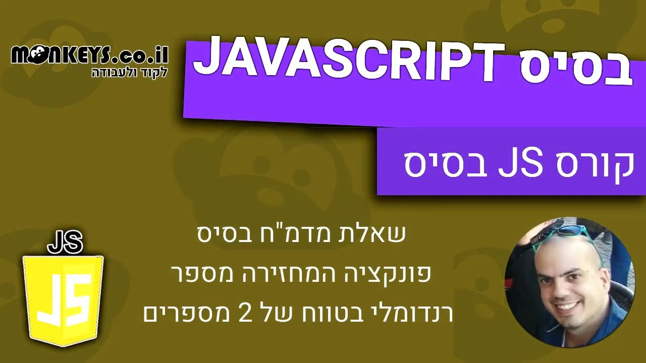 שאלות מדמח JS - 👓🧪💻 פונקציה שמחזירה מספר רנדומלי בטווח של 2 מספרים