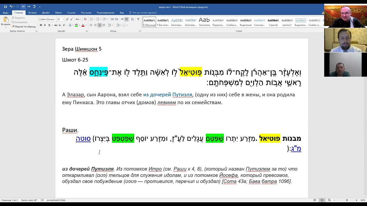 Зера Шимшон - глава Ваейра № 5 5782 - раввин Димитрий Калашник
