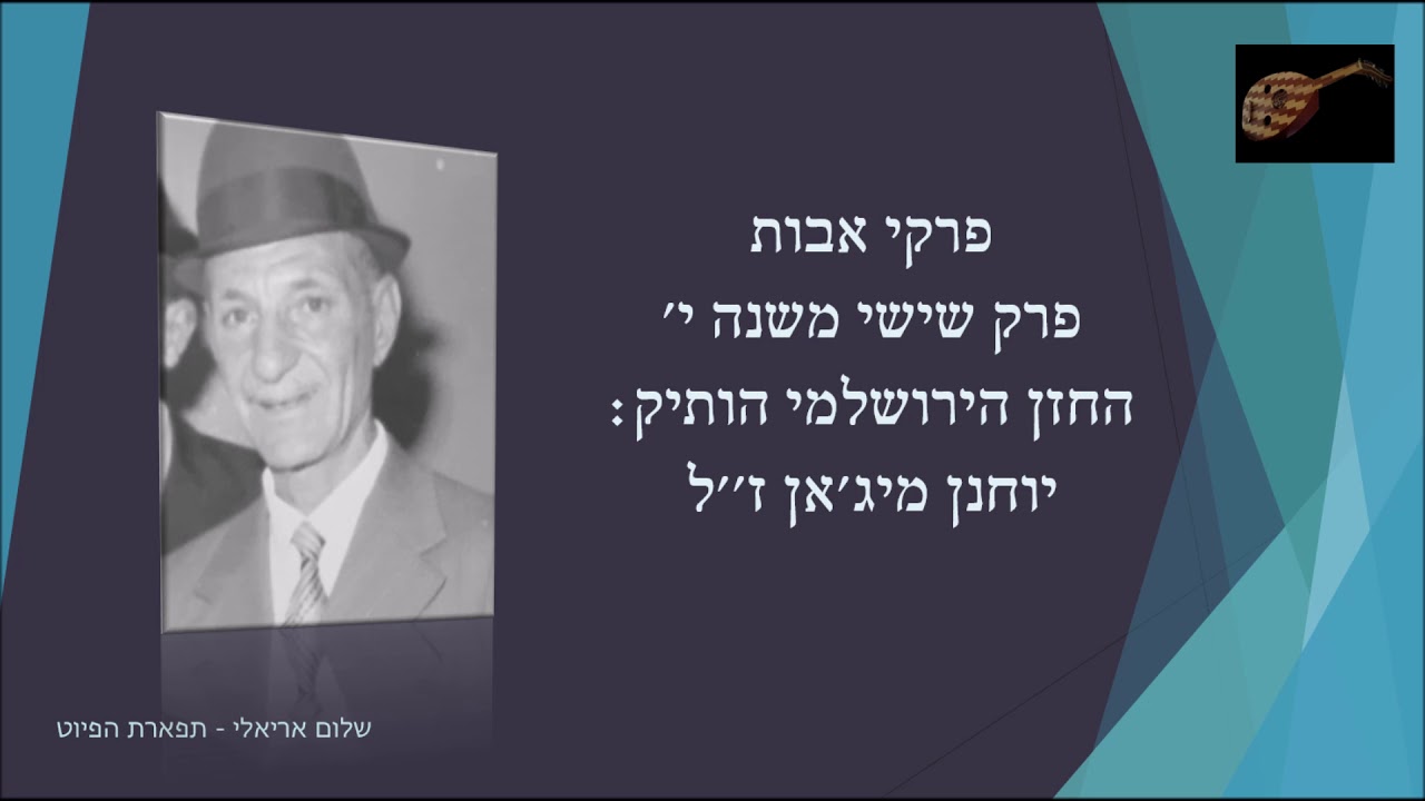 צפייה ישירה ב-YouTubeפרקי אבות פרק שישי החזן הירושלמי הוותיק יוחנן מיג'אן ז''ל