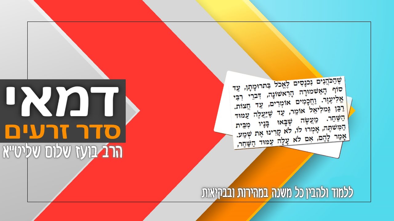 המשנה היא קובץ של פרשנויות על המקרא שתרם רבות לעיצוב היהדות וארגון החיים היהודיים לאחר חורבן הבית השני. המשנה חוברה במשך כמה דורות משלהי ימי הבית השני ובעיקר ב-150 השנים שעברו מאז חורבנו בשנת 70 לספירה. המשנה מחולקת לשישה 'סדרים', המכילים כל אחד מספר 'מסכתות'. כל מסכת עוסקת בנושא ספציפי אחד המרומז בשמה של אותה המסכת. סדרי המשנה נועדו להוות קו מנחה ובסיס איתן לשם קביעת ההלכות בקהל ישראל, לדורות. סדר זרעים – עוסק בברכות ובמצוות התלויות בארץ. מכיל 655 משניות ב-11 מסכתות. סדר מועד – עוסק בשבתות, חגים ותעניות. מכיל 681 משניות ב-12 מסכתות. סדר נשים – עוסק באישות, קידושין, גירושין וכדומה. מכיל 578 משניות ב-7 מסכתות. סדר נזיקין – עוסק בדיני ממונות וסדרי המשפט. מכיל 685 משניות ב-10 מסכתות. סדר קדשים – עוסק בבית המקדש ובקורבנות. מכיל 590 משניות ב-11 מסכתות. סדר טהרות – עוסק בסוגי טומאות וטהרתן. מכיל 1,003 משניות ב-12 מסכתות. שישה סדרי משנה סדר זרעים: ברכות, פאה, דמאי, כלאיים, שביעית, תרומות, מעשרות, מעשר שני, חלה, עורלה, ביכורים. סדר מועד: שבת, עירובין, פסחים, שקלים, יומא, סוכה, ביצה, ראש השנה, תענית, מגילה, מועד קטן, חגיגה. סדר נשים: יבמות, כתובות, נדרים, נזיר, סוטה, גיטין, קידושין. סדר נזיקין: בבא קמא, בבא מציעא, בבא בתרא, סנהדרין, מכות, שבועות, עדויות, עבודה זרה, אבות, הוריות. סדר קודשים: זבחים, מנחות, חולין, בכורות, ערכין, תמורה, כרתות, מעילה, תמיד, מידות, קינים. סדר טהרה: כלים, אוהלות, נגעים, פרה, טהרות, מקוות, נידה, מכשירין, זבים, טבול יום, ידיים, עוקצים. הרב בועז שלום שליט"א הוציא בשנים האחרונות אלפי שיעורי תורה במגוון נושאים. שיעורים מעמיקים בתנ"ך, משנה, דף היומי, מחשבה, מוסר, הלכה, אגדה, עין יעקב, אור החיים, חומש עם רש"י, כלי יקר, דרשות על פרשת שבוע, ועוד. הרב מכהן כיו"ר ארגון 'טעמו וראו', וראש מדרשת 'בית אליהו' ברחוב דב גרונר 11 בבני ברק. במשך שנים עסק הרב במסירת הרצאות ובקירוב רחוקים בארגון 'ערכים' ובערוץ 'הידברות' במגוון נושאים. כמו כן מוסר הרב שיעורים קבועים במדרשת 'פסגות' שברחוב בן ציון גליס 37 אזוה"ת סגולה בפ"ת. הרב בועז שלום חיבר שני ספרים 'משנת החלומות' ו'משנת הגלגולים'. לרב בועז שלום אתר אינטרנט בשם "טעמו וראו" שם תוכלו למצוא את כל שיעוריו בכתובת https://taamu.co.il השיעורים ניתנים לשמיעה ואף להורדה בחינם. באתר ניתן אף להעיר או לשאול על השיעורים ולקבל את תגובת הרב. זכות השיעור לעילוי נשמת אברהם בן ימנה ויעקב ויוסף בן אורה וחיים.