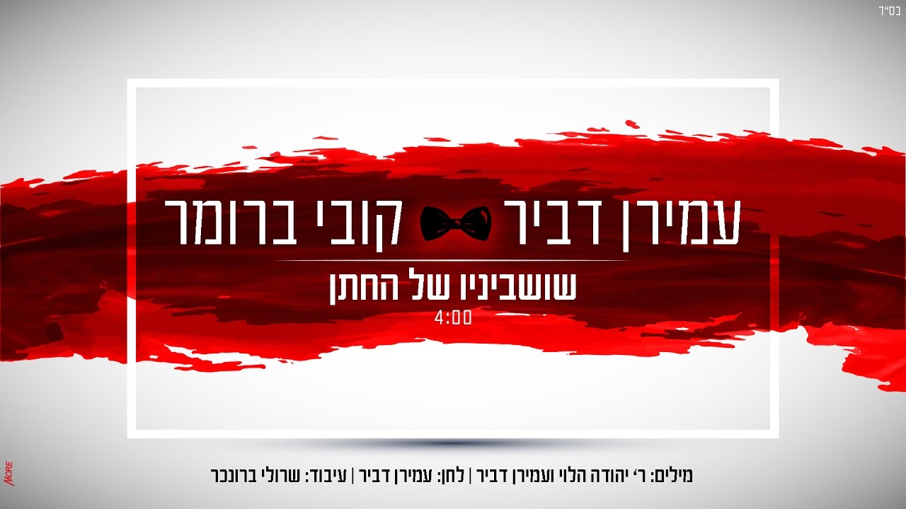 האתר הרשמי: http://www.AmiranDvir.com פייסבוק: https://Facebook.com/AmiranDvir אינסטגרם: http://instagram.com/AmiranDvir האמן והיוצר עמירן דביר לא נח לרגע... כמידי תחילת עונת חתונות מגיש עמירן סינגל חדש אל רחבת הריקודים. והפעם מארח את "הגולדן בוי" החרדי קובי ברומר לדואט "שושביניו של החתן". את המילים והלחן כתב עמירן בהשראת מאמר של רבי יהודה הלוי, על ההפקה המוזיקאלית שרולי ברונכר - אשף המוזיקה האלקטרונית במגזר. עמירן דביר השוהה כעת בסיבוב הופעות ברחבי דרום אפריקה מספר: "המילים של הריה"ל תפסו אותי חזק, כי זה בעצם מה שאני מרגיש בכל חתונה, אני עושה הכל כדי להקרין שמחה ואנרגיות לקהל שמשמחים את החתן. האנרגיה הזאת עוברת לחתן, מתעצמת וחוזרת לרוקדים שמחזירים אותה אליי". קרדיטים: מילים: ר' יהודה הלוי \ עמירן דביר לחן: עמירן דביר עיבוד: שרולי ברונכר הפקה מוזיקלית: שרולי ברונכר \ עמירן דביר מיקס: אלי קליין הוקלט באולפני טנור - מיכאל צי. אריזה גרפית וקליפ מילים: סטודיו MORE מור לחיאני תודה מיוחדת לזמר שלום ברנהולץ על הרעיון למילים מילים: בואו וראו הוד חתן שושביניו סביבו ושמחו ביום חתונתו וביום שמחת לבו הוד שושביניו מאירים את החתן שמאיר את הרוקדים סביבו הוד שושביניו מאירים את החתן שמאיר את הרוקדים סביבו ______________________________ עמירן דביר והלהקה להזמנות: משרד: 03-5704054 | נייד: 054-5321878 דוא"ל: minik@bezeqint.net Amiran Dvir & Band Bookings & info: Office: +972-35704054 | Mobile: +972-54-5321878 Email: minik@bezeqint.net