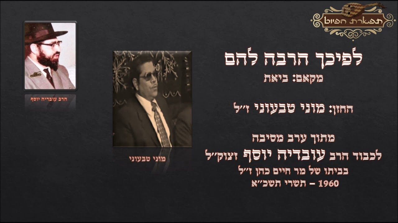 צפייה ישירה ב-YouTubeלפיכך הרבה להם החזן מוני טבעוני ערב לכבוד מרן עובדיה יוסף זצוק''ל 1960 מקאם ביאת