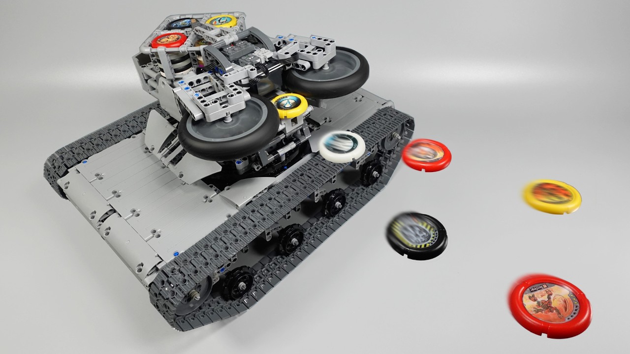 Building and testing a remote controlled Lego Throwbot Disk launching tank with a rotary magazine. Chapters: 00:00 Launching Mechanism 01:22 Feeding Mechanism 01:56 Rotary Magazine 04:10 Chassis 04:56 Tilt Mechanism 05:29 Controls 06:07 Test BuWizz 2.0 Bluetooth controlled rechargeable battery box: https://buwizz.com/shop/1-buwizz?ref=155 BuWizz Motor: https://buwizz.com/shop/buwizz-motor?ref-155 Laser Tachometer: https://amzn.to/3o7ZUXK Camera used for this video: https://amzn.to/3Hxisci Microphones used for this video: https://amzn.to/3HpIxdY Please note: I get a commission if you buy via Amazon or BuWizz link above. Thanks for your support. Metal Beam with Bearing: https://bit.ly/3wjA5cE CADA micro motor: https://decadastore.com/products/micro-motor-jv5043 BrickController2 App: https://bit.ly/3JypnV0 Where I get my parts: https://www.bricklink.com/v2/main.page #bricktechnology #legotechnic #lego #asmr #engineering #buwizz #brickcontoller2 #disclauncher