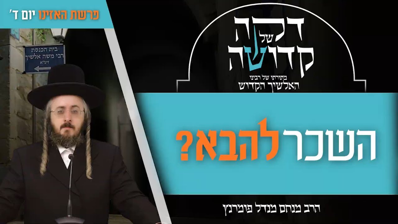הרב מנחם מנדל פומרנץ | דקה מתורתו של רבינו האלשיך הקדוש - יום ד' פרשת האזינו • השכר להבא? •