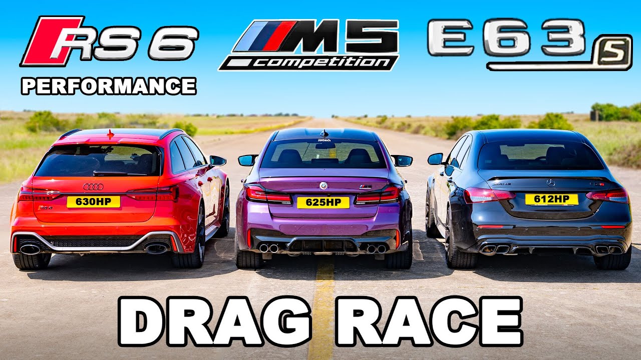 New Audi RS6 Perf v BMW M5 v AMG E63 S: DRAG RACE