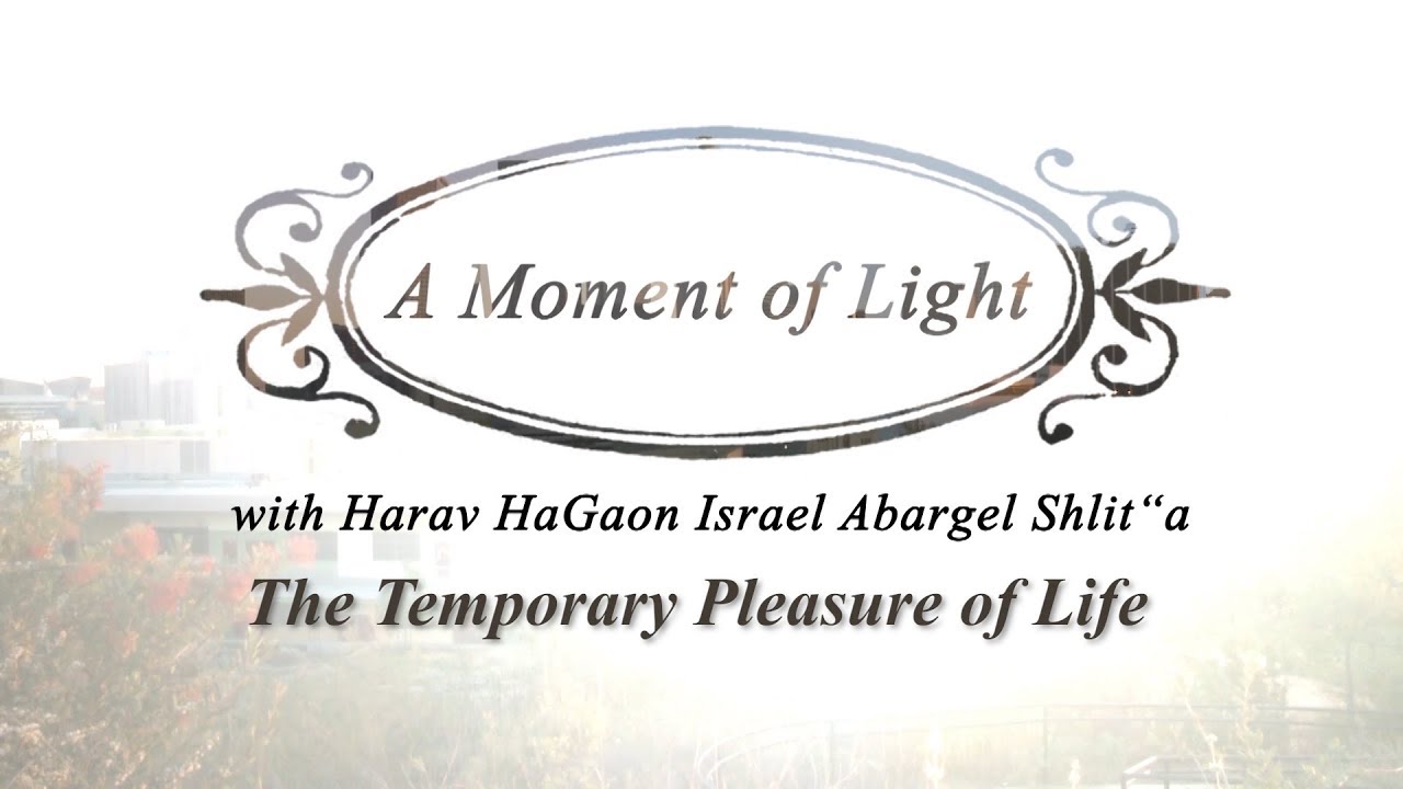 "A Moment of Light" with Harav HaGaon Israel Abargel Shlit"a - The Temporary Pleasure of Life. Become a partner of worldwide Torah distribution! For dedications, commemorations and purchase the books of our Holy Rav, call now: +972-8-97-66-979 , rebbiisrael@hameirl.com The "Meir La'Aretz" Foundation Headed by Harav Israel Abargel Shlit"a. Contact us in +972-8-97-66-979 , rebbiisrael@hameirl.com
