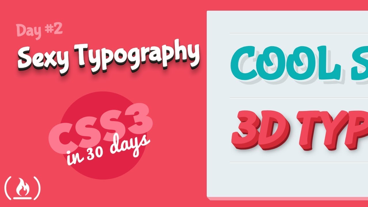 Use CSS3 to create visually attractive typography and cool text effects! ⭐️Files you need ⭐️ 💻Sexy Typography Code: https://www.dropbox.com/sh/dcpp6gi7bntuyo2/AABvqo_REODZdRRufsbsvBJHa?dl=0 💻All tutorials in this series need this "_theme-styles" directory (only download once): https://www.dropbox.com/sh/890hx6ke34oovaz/AAByJ-jb-H5pWuIUx7t_GvQqa?dl=0 This video works as a stand-alone tutorial but is also day 2 of CSS3 in 30 Days. For the rest of the series, check out this playlist: https://www.youtube.com/playlist?list=PLWKjhJtqVAbl1AfjiGyYxwpdAPi5v-1OU CSS3 in 30 days is developed by Brad Hussey. Check out his website for more great tutorials: https://codecollege.ca/ -- Learn to code for free and get a developer job: https://www.freecodecamp.org Read hundreds of articles on programming: https://medium.freecodecamp.org ❤️ Support for this channel comes from our friends at Scrimba – the coding platform that's reinvented interactive learning: https://scrimba.com/freecodecamp