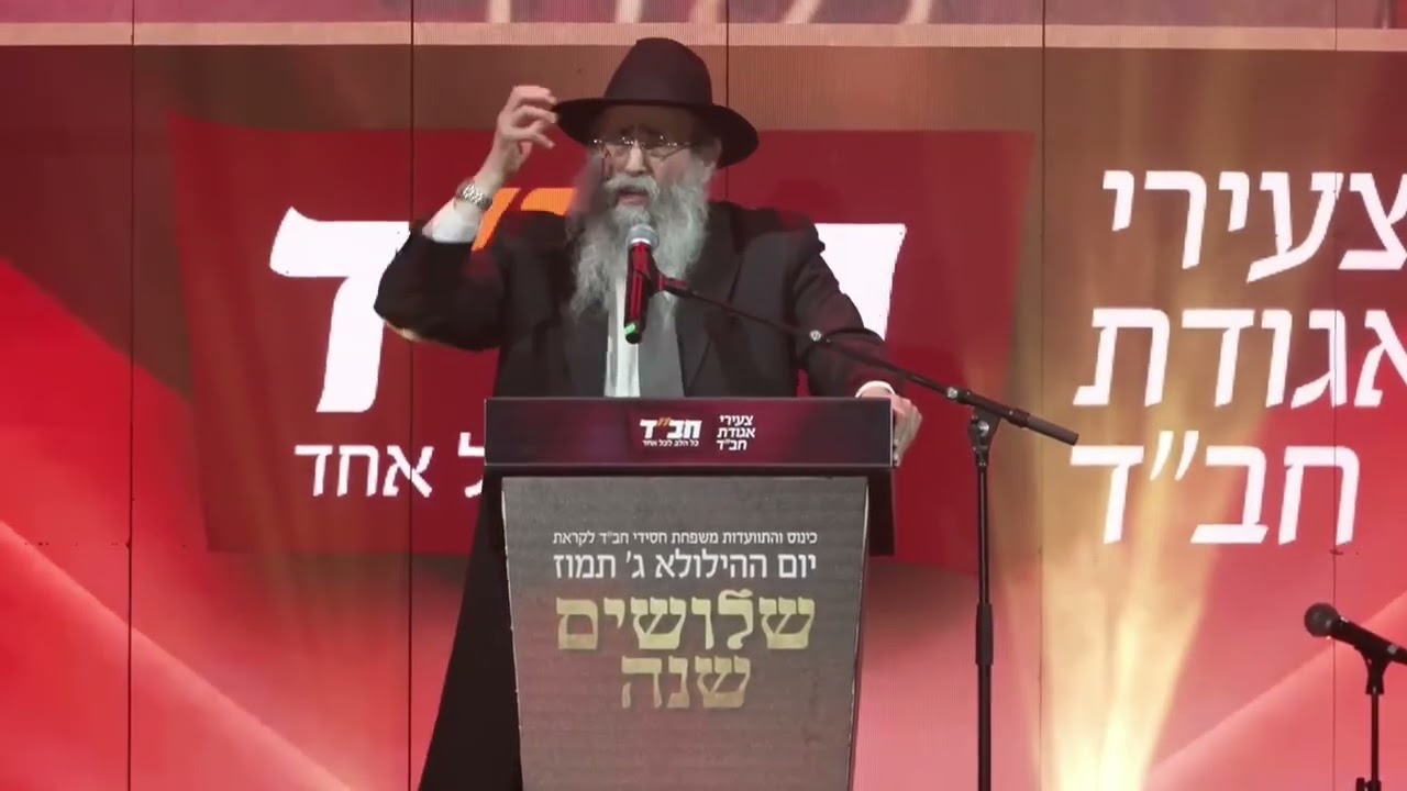 צפייה ישירה ב-YouTube"לימוד תורתו של הרבי" הנאום של הרב מנחם מענדל גלוכובסקי - כינוס ג' תמוז היכל מנורה, שנת תשפ"ד