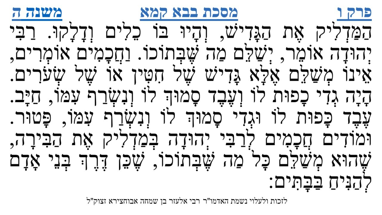 צפייה ישירה ב-YouTubeמסכת בבא קמא פרק ו משנה ה
