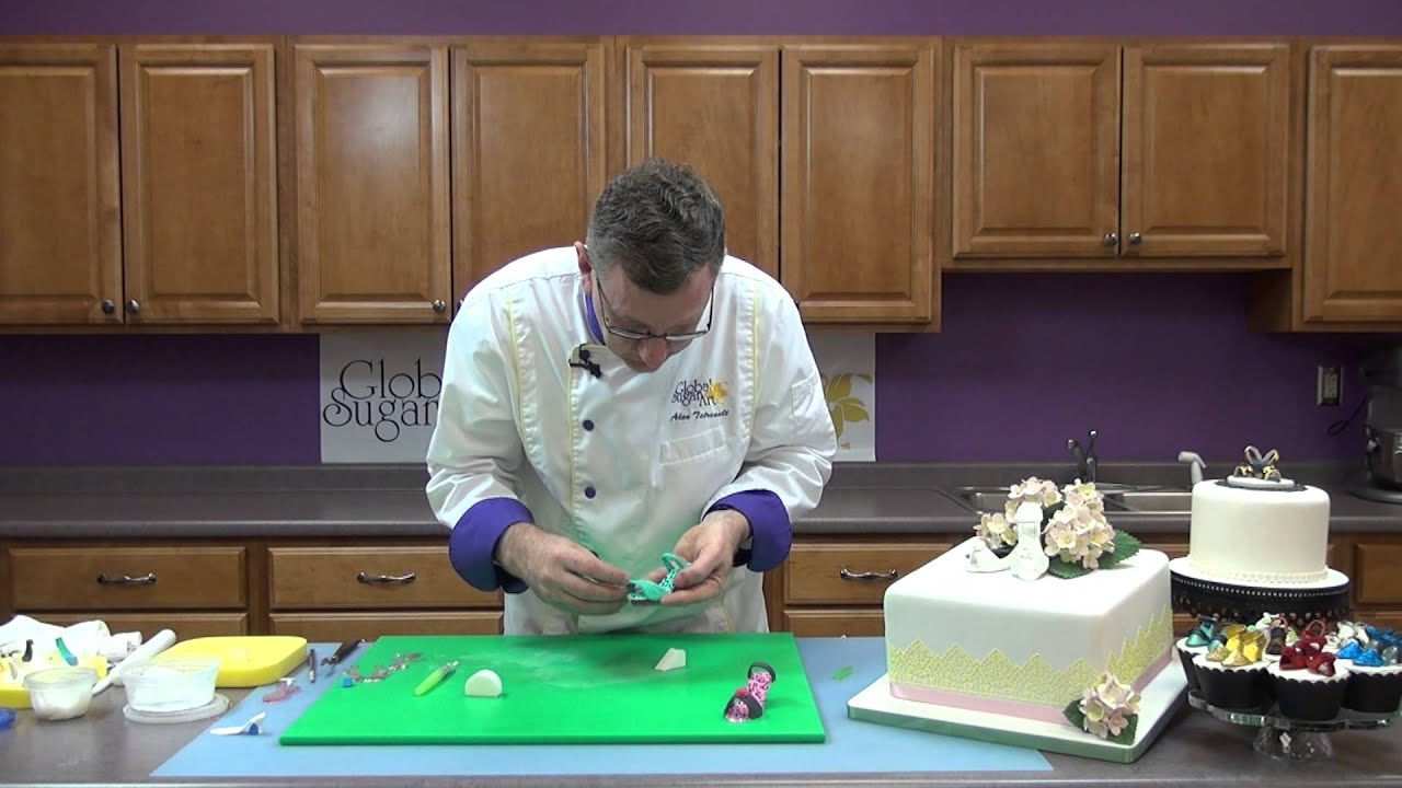 Supply List: https://www.globalsugarart.com/how-to-make-high-heel-sugar-shoes-video-inspiration.html In this video Chef Alan Tetreault, of Global Sugar Art, teaches how to cut and assemble high-heeled shoes using JEM's shoe cutter sets and Mexican Paste. Whether you want to embellish your soles with a fun Edible Image ® or keep them clean and classy, Chef Alan will show you the tricks to creating adorable large and miniature shoes, perfect to top any cake or cupcakes. For different shoe decorating ideas check out our Kick Up Your Heels Cake & Cupcakes photo tutorial at: http://www.globalsugarart.com/tutorial.php?sheetid=172 Facebook - www.facebook.com/globalsugarart Instagram - @globalsugarart Shop, Save & Decorate With Us! http://globalsugarart.com