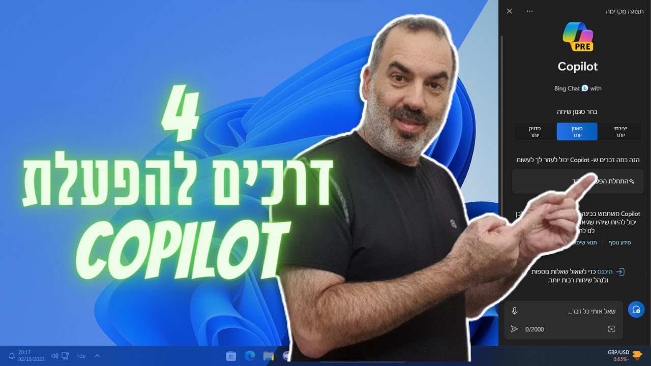מאד אהבתם את הסרטון על העדכון הגדול האחרון של ווינדוס 11 (Moment 4). הבעיה שכמו שקרה אצלי, גם חלקכם לא קיבלו את עדכון ה-Copilot ומהפניות שלכם אלי, מסתבר שאתם נורא רוצים אותו. אז חקרתי ובדקתי ומצאתי כמה שיטות שמתיימרות להפעיל את ה-Copilot עוד לפני שמיקרוסופט יחליטו שמגיע לכם לקבל אותו. מזהיר מראש: מדיווחים באינטרנט, לחלק מהאנשים שיטה אחת לפחות עבדה. מדיווחים אחרים, אף אחת מהשיטות לא עבדה. אז אני מביא לכם את הפתרונות כמות שהם, אבל לא מתחייב שזה בוודאות יעבוד. *שיטה ראשונה (Vivetool)* לינק להורדה: https://github.com/thebookisclosed/ViVe/releases שורת הפקודה: vivetool.exe /enable /id:44774629,44850061,44776738,42105254,41655236 *שיטה שניה (רג'יסטרי)* לשנות את הערך ל-1 בנתיב: HKEY_CURRENT_USER\Software\Microsoft\Windows\Shell\Copilot\BingChat\IsUserEligible *שיטה שלישית* איפוס המחשב *שיטה רביעית (חלקית)* קיצור דרך לשורת הפקודה: microsoft-edge:///?ux=copilot&tcp=1&source=taskbar *חלוקה לקטעים* 00:00 הקדמה 01:43 בדיקת עדכונים 02:43 Vivetool 05:54 שינוי ברג'יסטרי 09:00 איפוס המחשב 10:57 קיצור דרך ---- 🔻 איפה אפשר למצוא אותי🔻 דיסקורד: https://discord.gg/AjMTSdvfQd קבוצת דיון בטלגרם: https://t.me/MyTechDeskGroup קבוצת פייסבוק: https://www.facebook.com/groups/mytechdesk 🔻דרכים לתמיכה בערוץ🔻 קנו לי כוס קפה (או כמה כוסות): https://bit.ly/3edwdEb תרומה דרך פייפאל: https://bit.ly/3SCaPYa תרומה דרך סטרים אלמנטס: https://bit.ly/3Cd88Wb 🔻עמלה קטנה לערוץ אם תקנו באתרים דרך הלינקים האלה🔻 KSP: https://ksp.co.il/item/F9819AX&homepage Amazon: https://amzn.to/2HNmeoA Ali Express: https://bit.ly/3jXLTJq Banggood: https://bit.ly/3jRjmFr הבהרה: כל המוצג בסרטון הינו לטובת הדרכה בלבד. אינני נושא באחריות לכל מקרה של תקלה, וירוס, באג, שבר או כל בעיה אחרת שתיגרם בעקבות נסיון לחקות את פעולות המציג. בנוסף, התוכנות המוצגות בערוץ אינן שייכות למציג ואין לו חלק בכתיבת הקוד שלהן ועל כן אין לו אחריות על כל תקלה שתיגרם בעקבות השימוש בהן. על כן, חלה חובה על המשתמש לבדוק בעצמו את כל הפעולות לפני עשייתן ואין לבוא למציג בטענה כלשהי מעצם ביצוע פעולה בעקבות הסרטון. #mytechdesk