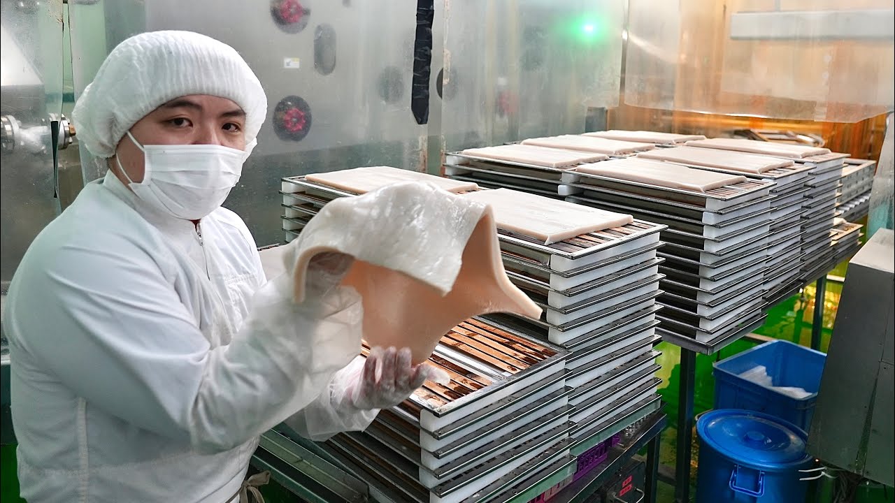 צפייה ישירה ב-YouTubeくずもちを大量生産するプロセス。日本の美味しい和菓子製造工場。