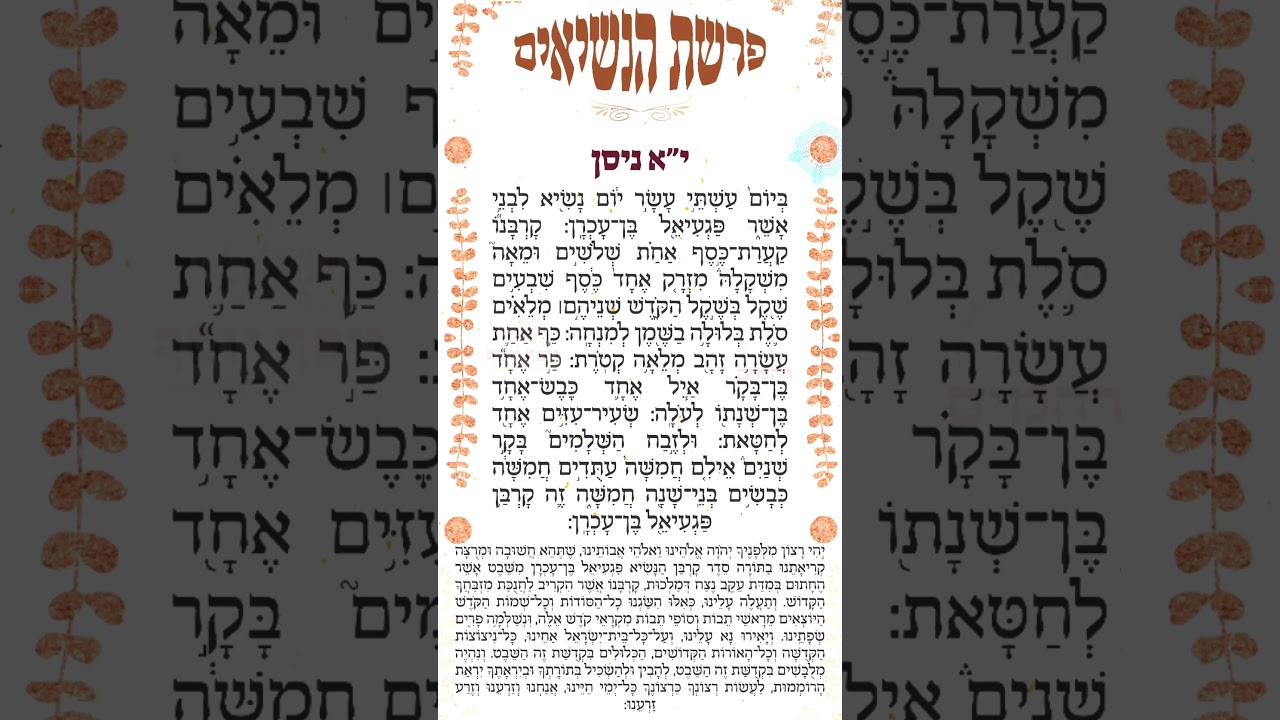 פרשת הנשיאים ליום י"א בניסן (09/04) - קריאה קצרה של דקות בודדות חבל לפספס💛 הפיצו🔥