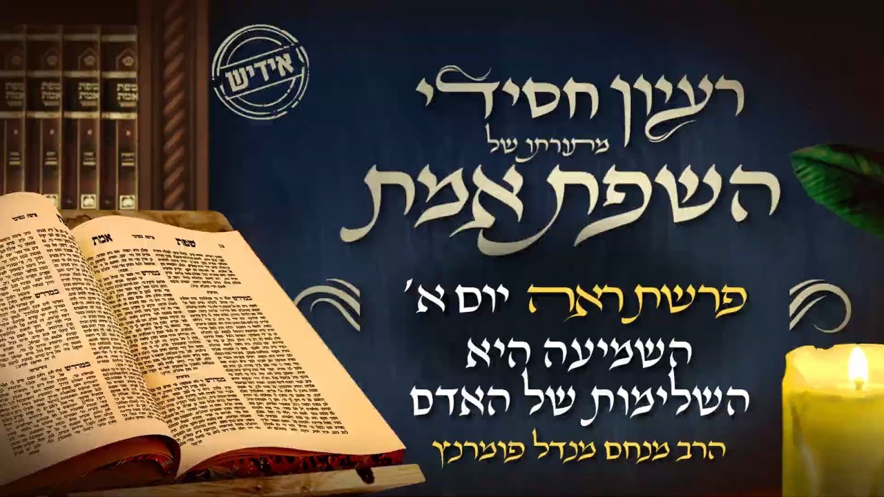 הרב מנחם מנדל פומרנץ | רעיון חסידי מהשפת אמת -אידיש- יום א' ראה תשפ"ד • השמיעה היא השלימות של האדם •
