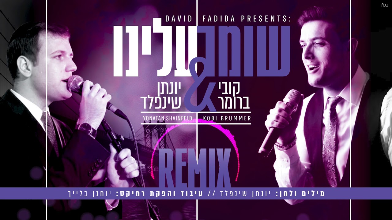 לפרטים והזמנות - kobimuzek@gmail.com | 052-492-6400 ------------------------------------- עקבו אחרי יונתן שינפלד: פייסבוק - https://bit.ly/318FKAZ אינסטגרם - https://bit.ly/2HTRfpL יוטיוב - https://bit.ly/2QQpgsC עקבו אחרי קובי ברומר: פייסבוק - https://bit.ly/2SA569l אינסטגרם - https://bit.ly/2ETnXUs יוטיוב - https://bit.ly/2Zon9k3 הלהיט החדש 'שומר עלינו' שכתב והלחין יונתן שינפלד וביצע במשותף עם קובי ברומר, כבש בשבועות האחרונות את מצעדי ההשמעות בתחנות הרדיו וזכה לעשרות אלפי צפיות ביוטיוב. כעת מוציאים השניים גרסת רמיקס חדשה לשיר בהפקה מוזיקלית של המעבד הצעיר יוחנן בלייך. Shomer Aleinu - Wich was composed by Yonatan Shainfeld and features Kobi Brummer, has taken over in the last week's radio stations, and has gained tens of thousands of views on YouTube. Now the two are releasing a remix to the song with the musical direction of the young and talented .Yochanan Bleich בית א': בימי מתתיהו כהן גדול ובניו, עמדה מלכות יוון להשכיחם תורתנו, בימי אחשוורוש והמן הרשע, רצו לכלותינו. פזמון: ורק אתה שומר עלינו, רק אתה מציל, מצילנו מידם, מצילנו מידם. ורק אתה שומר עלינו, רק אתה מציל, מצילנו מידם מצילנו מידם. בית ב': על ניסים ונפלאות שבכל דור ודור, מהללים בתשבחות וכן בשיר מזמור, כן גם ביום הזה ממש זה בכלל לא מובן, מימיננו ומשמאלנו רוצים לכלותנו. בית ג': מהללים כל יום ומקווים, רק מתפללים, הושיענו, והצילינו, תציל אותנו מכל פגע רע, וכל גזירה תקרע, הושיענו, והצילינו. אין כאלוקינו, אין כאדונינו, אין כמלכנו, אין כמושיענו. מי כאלוקינו, מי כאדונינו, מי כמלכנו, מי כמושיענו. שומר עלינו שירה: יונתן שינפלד & קובי ברומר מילים ולחן: יונתן שיינפלד עיבוד והפקת רמיקס: יוחנן בלייך yochananbleich@gmail.com מיקס ומאסטרינג: רועי בארי הפקה: FDD Production LTD ניהול אישי: דוד פדידה יחסי ציבור: Ari@fdd.co.il עיצוב גרפי: סטודיו Gilizi הנפשה: מוריה לוין הפצה: Mobile1 Music #יונתן_שינפלד #קובי_ברומר #שומר_עלינו