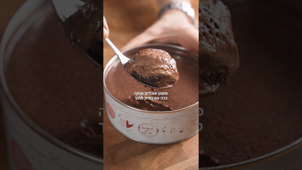 יום העוגה הבינלאומי 🎂 בואו נכין עוגת שוקולד פח עם 3 שכבות מפנקות! למרות שהסאונד בהקלטה המקורית נהרס לחלוטין בגלל בעיה במיקרופון העוקבים החמודים שלי שכנעו אותי לא לוותר על הסרטון ולשים לו ווייסאובר ולפרסם בכל זאת 🫶 מקווה שתאהבו את המתכון! הוא בכוונה סופר פשוט וטעים כאילו השקעתם בו שעות! * הקוטר של הקופסה שהשתמשתי בה הוא 15 ס״מ אבל המתכון למטה מתאים לקוטר 21 ס״מ. כדי להמיר לקוטר 24 ס״מ תכפילו כל מרכיב ב1.3 מה צריך? לעוגה עצמה: 80 גרם קמח לבן 100 גרם סוכר לבן 20 גרם קקאו (עדיף הולנדי) חצי כפית סודה לשתייה חצי כפית אבקת אפייה רבע כפית מלח 100 גרם שמנת חמוצה ביצה 1 לארג׳ כפית תמצית וניל 80 מ״ל שמן 100 מ״ל מים רותחים עם כפית קפה נמס מחממים תנור ל-160 מעלות בקערה גדולה מערבבים את כל המרכיבים היבשים, מוסיפים את כל הרטובים פרט למים הרותחים ומערבבים היטב. מוסיפים את המים הרותחים, מערבבים, יוצקים לתבנית האפייה ואופים למשך 30-40 דקות עד שקיסם במרכז העוגה לא יוצא רטוב. לח זה בסדר. מוציאים ומצננים מעט. קורצים עיגול בגודל קופסת העוגיות. לשכבת הקרמו / קרם שוקולד: ביצה לארג׳ 80 גרם שמנת 38% 80 גרם חלב כף סוכר 100 גרם שוקולד מריר 60-70% על בן מארי (קערה על סיר עם קצת מים חמים) מערבבים את כל המרכיבים פרט לשוקולד ומחממים תוך כדי ערבוב עד 80 מעלות. חשוב למדוד טמפ׳. מוזגים לכלי עם השוקולד, ממתינים דקה עד שהשוקולד ימס ומערבבים לאיחוד, רצוי בלי להכניס הרבה אוויר. אפשר לעשות זאת בכד של בלנדר מוט ולטחון. יוצקים מעל שכבת העוגה בתוך הקופסה ומיישרים. מכניסים למקרר להתמצקות של שעה לפחות או למקפיא. לגנאש: 10 גרם חמאה 100 גרם שוקולד מריר 60-70% 120 גרם שמנת 38% מרתיחים את השמנת ויוצקים לקערה/כד בלנדר מוט ביחד עם השוקולד והחמאה. ממתינים דקה שימסו. מערבבים היטב. יוצקים מעל שכבת הקרמו. בסיום מצננים במקרר כ-4 שעות לפחות שהקרמו וגנאש יתמצקו היטב! בוזקים אבקת קקאו או סוכריות צבעוניות או גילופי שוקולד לפני ההגשה 😋