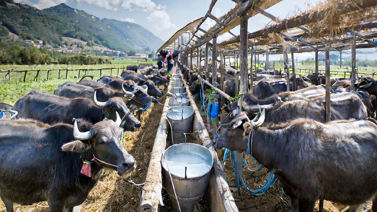 World milk production derives from cows, buffaloes, goats, sheep, and camels, with buffalo milk being the second most consumed type after cow’s milk.Just like cow’s milk, buffalo milk has a high nutritional value and is used to produce dairy products like butter, yogurt, cheese, and ice cream. Though there are many varieties of buffaloes, the water buffalo contributes the most to the world’s milk production. Water buffaloes are divided into the river and swamp types. The river buffalo accounts for the majority of the milk production, while the swamp buffalo is mainly used as a draught animal. India and Pakistan produce about 80% of all buffalo milk worldwide, followed by China, Egypt, and Nepal, where you find more dairy buffaloes than cows . You also find dairy buffaloes in the Mediterranean, specifically in Italy, where their milk is mainly used to make cheese . Buffalo milk has a high protein and fat content, which gives it a rich and creamy texture perfect for producing butter, cream, and yogurt . Credit: Torre Lupara http://www.aziendacesaregiulioiemma.it/ CASEIFICIO CIRIGLIANA SRL https://mozzarelladibufala.it/ Campana DOP https://www.mozzarelladop.it/ If you are the owner, send me a comment on the video. I will follow your request as soon as read. Thank you Thank For Watching Noal Farm For more Hot video Please Sub me Here: https://bit.ly/3gy34S6 Or visit our blog : https://noal.farm/ And More playlist Noal Farm : https://bit.ly/3gy3sQy Noal Sea : https://bit.ly/3BaSgBd Noal Processing : https://bit.ly/3mBP65t #BuffaloMilk #Buffalo.Milk.harvesting #cheese.processing