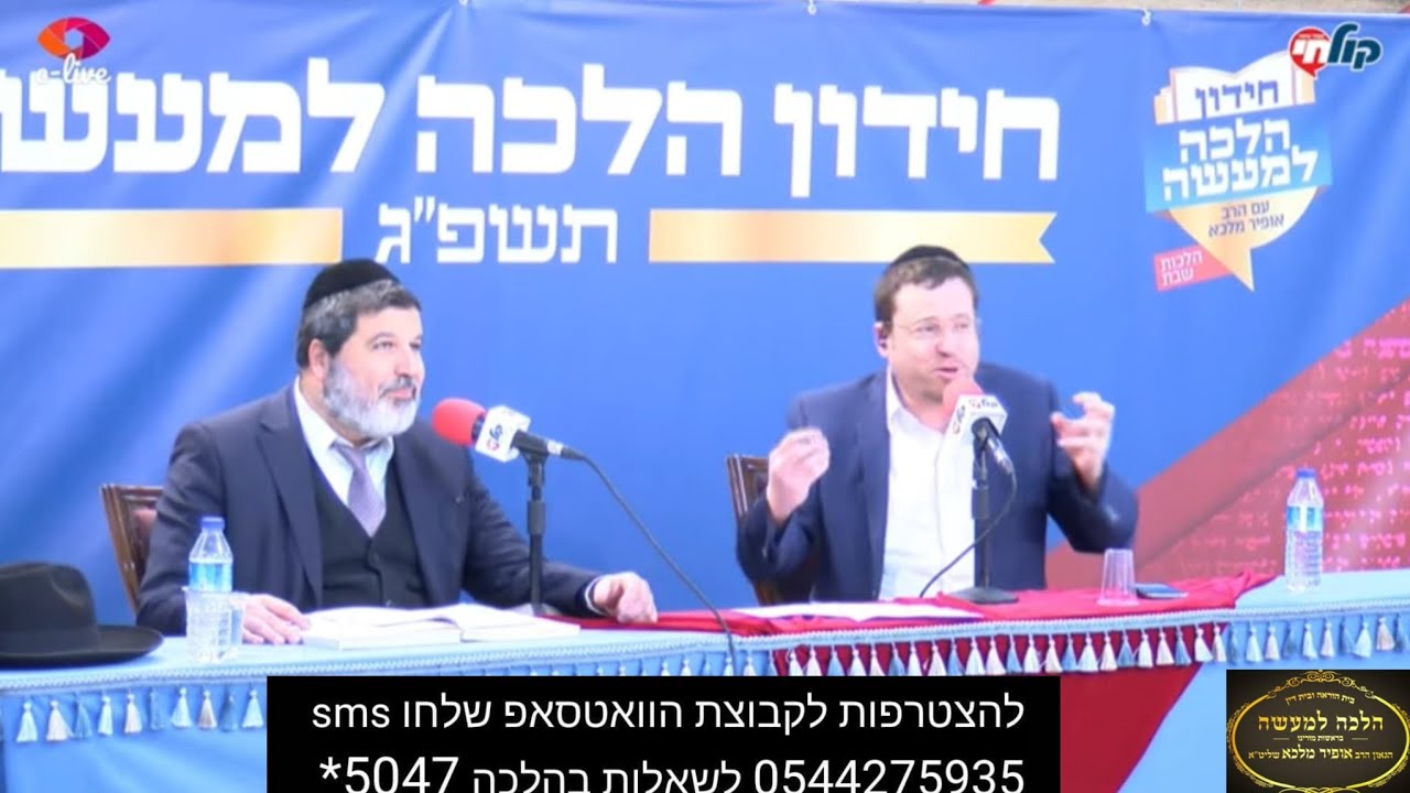 הצטרפו לערוץ שלנו ביוטיוב https://youtube.com/channelUCiT6KgOE1IDJ2XHE23Zk2Cg הצטרפו לשיעורי הרב אופיר מלכא בכול הארץ... ימים ראשון שני ושלישי: ירושלים ישיבת אור החיים 19:50 רחוב עזרא 1 ימי רביעי: 20:45 רחובות בי"הכ יד לשבים רח' שוסיוב 5. 22:10 בני ברק בי"הכ יביע אומר רח' עוזיאל 41 ימי חמישי : 17:45 ירושלים כולל בקרית נוער בית וגן שער 9 יום שישי:(פעם בשבועיים ) קרית אונו מאחורי הקניון בשעה 11:00 קרית גת ביה"כ אור החיים ענתות 3 11:00 אשדוד ביה"כ החיד"א 12:30 שבת: לאחר תפילת שחרית ירושלים בית הכנסת שערי ניסים רחוב שאול המלך 40 מענה הלכתי על ידי הרב שליט"א מדי יום שני בין 17:00-18:45 5047* שלוחה 1 כול יום רביעי בשידור חי שיעורו של הרב אופיר מלכא מיביע אומר בשעה 22:15 !!! קישורים 📲 לצפיה בשידור חי בקול הלשון https://www.kolhalashon.com/New/Live/LiveShiurimTree.aspx?RavID=1810&ShowVideo=True 📲לצפיה בשידור חי ביוטיוב https://www.youtube.com/@הרב.אופיר.מלכא.הלכה.למעשה 📲לצפיה ביוטיוב בטלפון הכשר בחרו מס 71 http://wiki.netfree.link/wiki/ערוצים_ביוטיוב_הפתוחים_בנטפרי