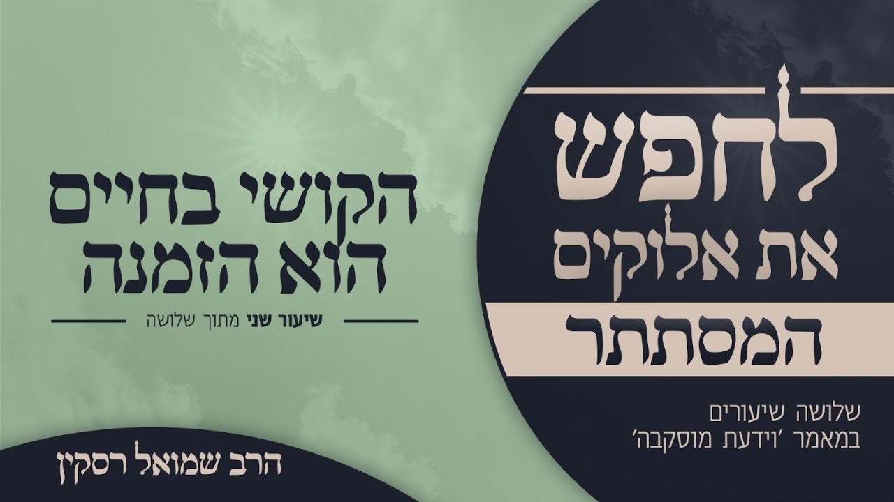 מפגש שני מתוך שלושה בנושא האלוקים המסתתר, מתוך המאמר "וידעת מוסקבה" של הרבי הרש"ב השיעורים נמסרים בבית מדרש ירושלמי מבית מעיינותיך למפגש הראשון: https://youtu.be/BNdcSIW81OM