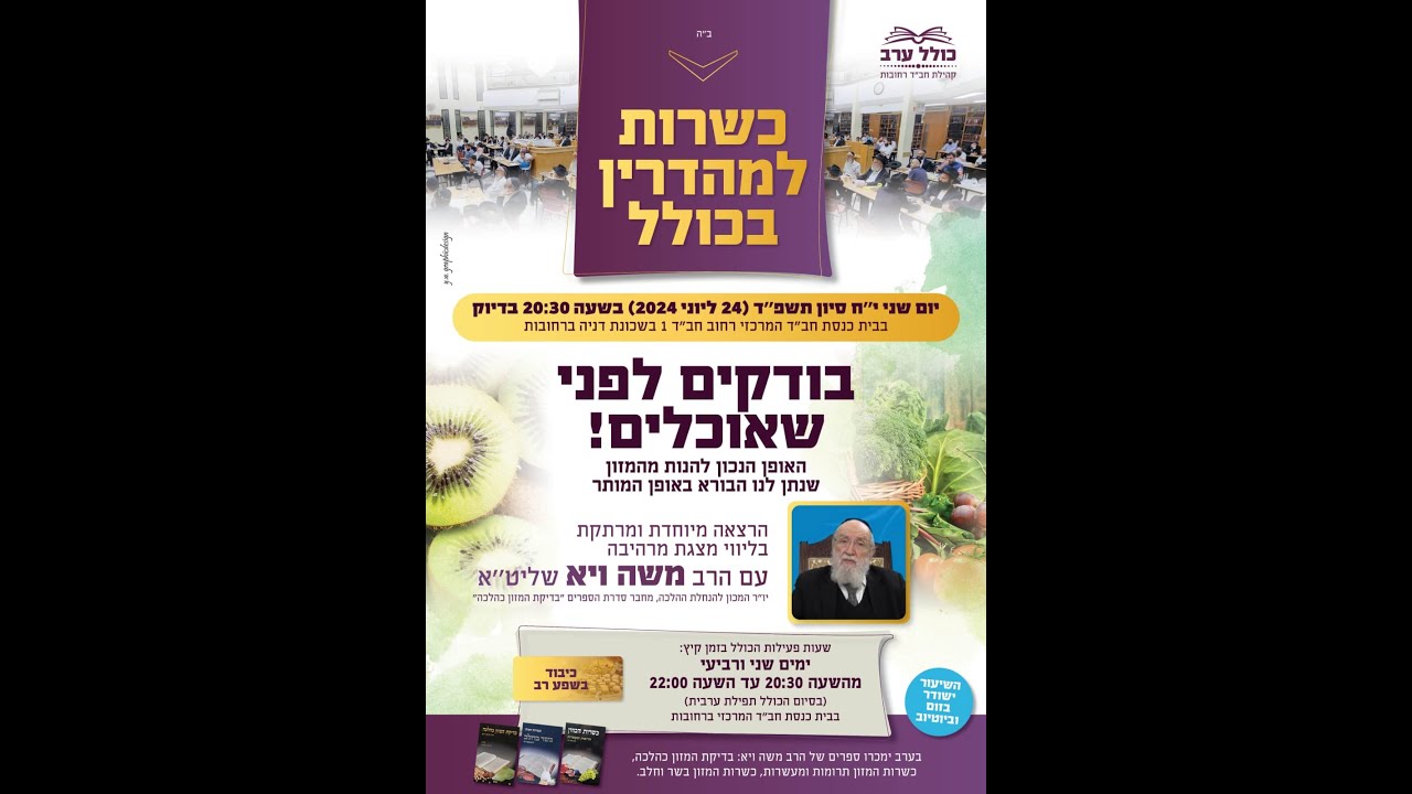 צפייה ישירה ב-YouTubeבודקים לפני שאוכלים - הרב משה ויא- במסדרת כולל עערב - קהילת חבד רחובות