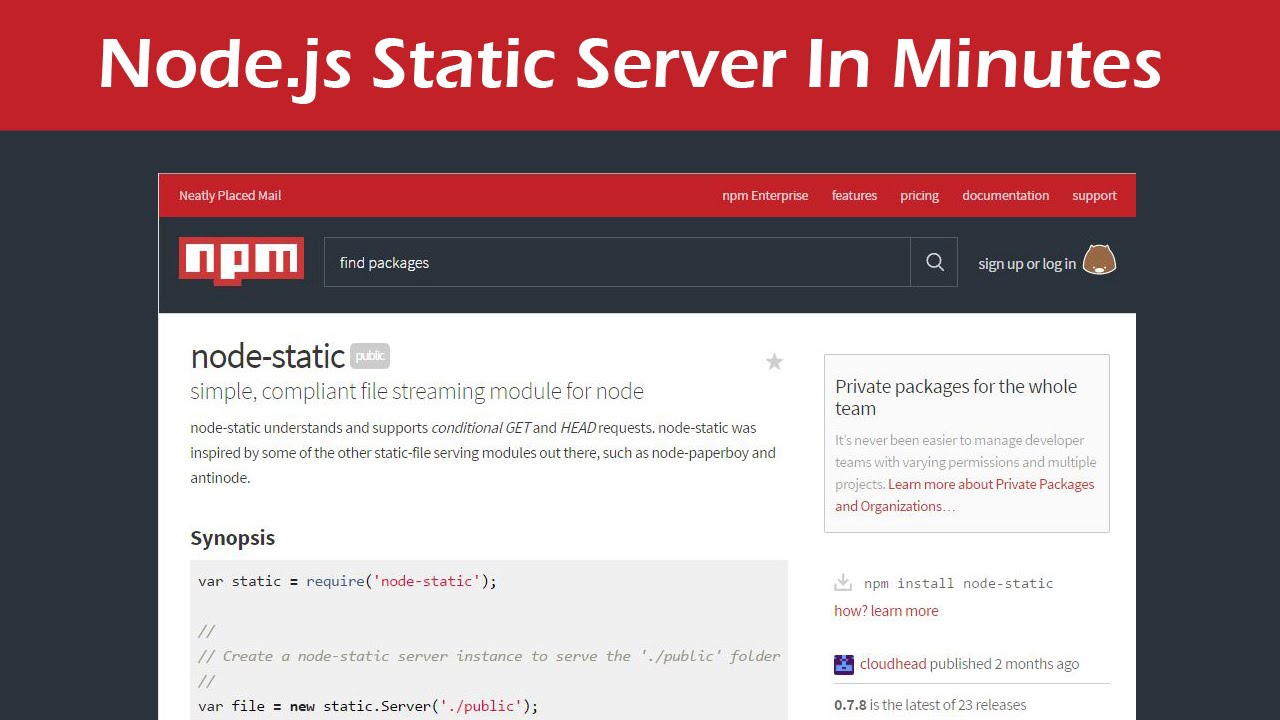 In this quick video Ill show you how to create a simple static server using Node.js along with the node-static module and then the live-server module.