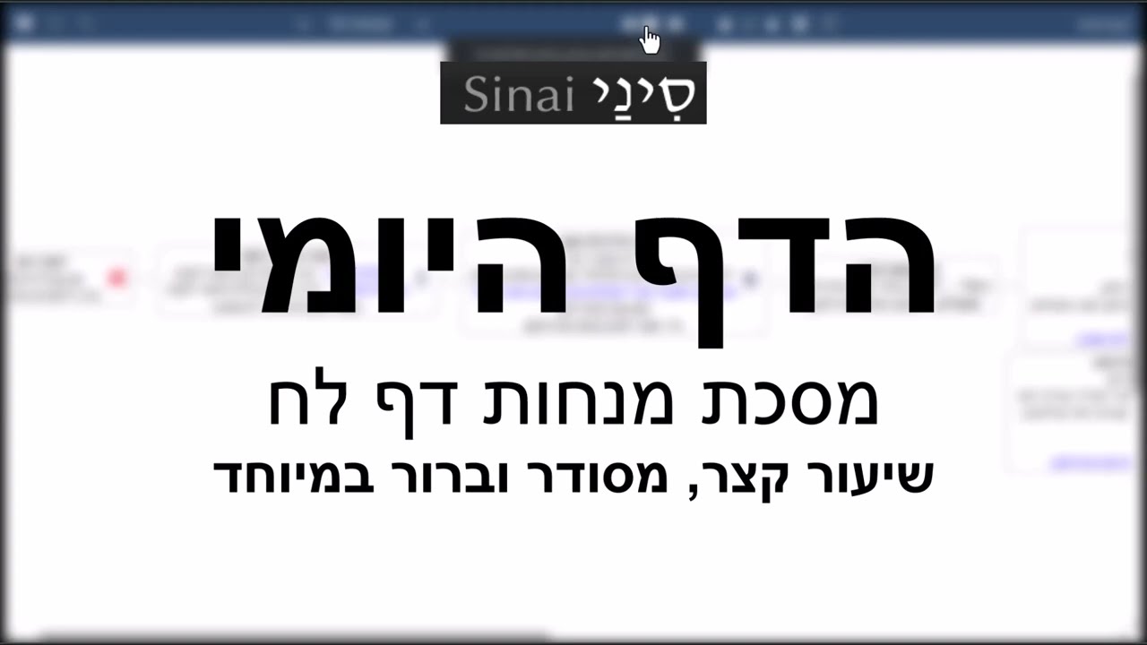 לאתר הדף היומי סיני - https://www.sinai.org.il לפודקאסט, לקבוצת הוואטסאפ, לקבל השיעור באימייל וקול הלשון: https://www.sinai.org.il/get להקדשת שיעורים ליחצו כאן - https://www.sinai.org.il/help לספר החדש שלנו על הפרשות "תורה חיים שלי" - https://www.sinai.org.il/%D7%AA%D7%95%D7%A8%D7%94-%D7%97%D7%99%D7%99%D7%9D-%D7%A9%D7%9C%D7%99/ לספר "כל התלמוד על רגל אחת" על הגמרא כנסו לכאן - https://www.sinai.org.il/book A Short and extremely clear Daf Yomi shiur. For other pages go over to our Daf Yomi website.