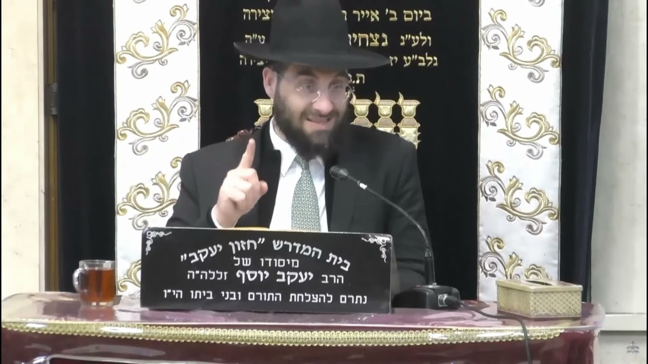 הרה"ג משה יוסף שליט"א בנו של מורנו ורבנו הרה"ג יעקב יוסף זצוק"ל נכדו של מרן פוסק הדור הרה"ג עובדיה יוסף זצוק"ל דיני ליל הסדר כוס ראשון הוא הקידוש הטעם שאומרים קדש ורחץ הדחת הכוס לפני הקידוש ולפני שאר הכוסות צריך לעשות שטיפה והדחה בכל הארבע כוסות מוזגים לבעלהבית את הכוס להראות דרך חרות המנהג שמוזגים גם לשאר המסובים להראות שררה וחרות צריך למלא את הכוס עד הסוף כדי שיהיה כוס מלא עד כמה זה נחשב כוס מלא? צריך למזוג את כל הארבע כוסות למזוג אותם בשלוש טיפות מים בעה"ב מקדש וכולם שותקים ומקשיבים מנהג המרוקאים והתוניסאים בקידוש עורך הסדר צריך להדריך את המסובים מה צריכים לעשות האם מברכים על כל כוס? צריכים לכוון בברכת שהחיינו על כל המצוות שמקיימים בלילה הזה מתי בודקים את החמץ בשנה זו {תשפ"ה} האם מברכים שהחיינו על בדיקת החמץ? האם יש עניין לשתות יין בארבע כוסות? האם צריך להקפיד לשתות רביעית יין בקידוש? איך מקיימים את ההלכה של אין קידוש אלא במקום סעודה? האם ארבע כוסות במיץ ענבים זה לכתחילה? האם יין שיש בו אחוזי אלכהול נמוכים נחשב יין? האם צריך לברך על הגפן על הכוסות הראשונים? האם צריך לקרוא את ההגדה בזריזות שלא יעבור 72 דקות מהקידוש עד הסעודה? מה הדין מי שלא הסב בשתיית ארבע כוסות כיצד ינהג? מי שחוזר לשתות האם יצטרך לברך שוב הגפן? מה הדין של נשים בהסיבה? האם מותר לאכול ולשתות באמצע ההגדה? האם מותר לאכול ולשתות לאחר אפיקומן? האם מותר לשתות משקאות חריפים בליל הסדר? האם מותר לאכול אחרי הקידוש לפני ההגדה? האם אפשר לאכול את הביצה מיד אחרי הקידוש? שודר בשידור חי בערוץ היוטיוב @בית הכנסת מוסאיוף הערוץ הרשמי https://www.youtube.com/channel/UCzfDH06s9l74j37DvqMUycg לצפיה בשידור חי בשיעורי הרב הגאון משה יוסף שליט"א צפו בקישור הנ"ל מדי יום א בשעה 20:15 שיעורי הרב משה יוסף שליט"א מתקיימים מדי שבוע יום ראשון בשעה 20:15-21:10 בבית המדרש חזון יעקב רחוב דוד 21 שכונת הבוכרים ירושלים יום שני בשעה 19:00-20:00 בבית הכנסת אהל אברהם רחוב יורי שטרן 6 פסגת זאב ירושלים יום שלישי תפילת ערבית בשקיעה ולאר מכן שיעור שעה בבית הכנסת אברהם אבינו רחוב הרב עוזיאל 16 באר יעקב בשעה 20:30-21:30 בבית הכנסת מצפה אריה רחוב אהרון אשכולי 110 רמות ב' ירושלים יום רביעי 20:30-21:30 בבית הכנסת פדויים מרכז מסחרי נוה יעקב ירושלים יום חמישי 20:30-21:30 בבית הכנסת בני מלכים רחוב ישעיהו הנביא 16 ראשון לציון יום שבת 16:30-17:30 בבית הכנסת יד שמואל ותמר רחוב שאול המלך 19 ירושלים מוצאי שבת 20:00-21:00 בבית הכנסת אהל תורה בתוך בית הספר בית יעקב רחוב חיים סירני 3 רחובות