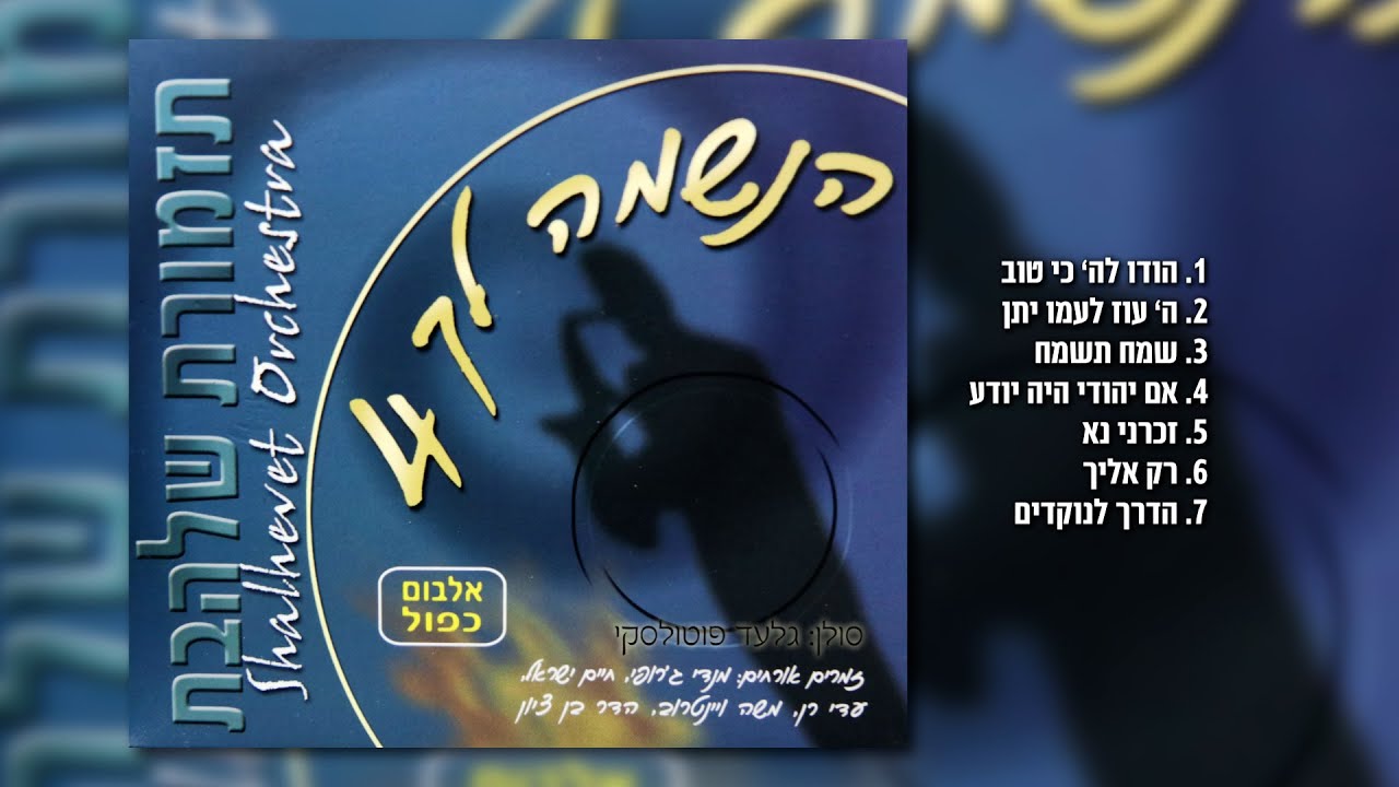 לשמיעת כל שירי גלעד פוטולסקי ותזמורת שלהבת To hear all the songs of Gilad Potolsky and Shalhevet Orchestra זמרים אורחים - הנשמה לך 4: משה וינטרוב, מנדי ג'רופי, הדר בן ציון, חיים ישראל, עדי רן. 1. הודו להשם כי טוב כי לעולם חסדו. מילים: תהילים קי"ח. לחן: ר' שלמה קרליבך. 2. השם עוז לעמו יתן השם יברך את עמו בשלום. מילים: תהילים כ"ט. לחן: ר' שלמה קרליבך. 3. שמח תשמח רעים האהובים כשמחך יצירך בגן עדן מקדם. מילים: שבע ברכות. לחן: ר' משה שור. 4. אילו יהודי היה יודע מה זאת חתונה, היה שמח ורוקד כל ה-70 שנה אילו יהודי היה יודע כמה ה' אוהב אותו אילו יהודי היה יודע מה כוחה של השמחה היה שמח ורוקד 120 שנה. לחן: ישראל דגן. זמר אורח: עדי רן. קריינות: דודי שוומנפלד. 5. זכרני נא וחזקני נא אך הפעם הזה האלוקים, ואנקמה נקם אחת משתי עיני מפלישתים. מילים: שופטים ט"ז. לחן: דב שורין. 6. רק אליך אלוקי קורא אני בלי קול, רק אותך תמיד אהבתי רק אותך מכל, שתשמע אותי קורא סומא מתוך הליל ותאיר לי את הדרך שלא אהיה נופל. כי ידעת את כל לב, וידעת מה כואב, מה אסור ומה מותר, מה הוא רע ומה ישר, אני יודע מעיניך לא נעלם דבר, יש תמים וחכמים ויש גם בני אדם, כאדונים ישחקו הם וגבה ליבם, ולשונם כצדיקים בסתר חידתם, אך לך הכל גלוי לך בורא עולם. מילים ולחן: אביהו מדינה. עיבוד: אריה ברקוביץ. זמר אורח: חיים ישראל. 7. הדרך לנוקדים. אינסטרומנטלי. לחן ועיבוד: יבגני לנדאו. ספוטיפיי - Spotify https://open.spotify.com/artist/0qYJ1FO8HqG5JKXOC4zDrl אפל מיוזיק - Apple Music https://music.apple.com/mx/artist/%D7%92%D7%9C%D7%A2%D7%93-%D7%A4%D7%95%D7%98%D7%95%D7%9C%D7%A1%D7%A7%D7%99/1535636972 דיזר - Deezer https://www.deezer.com/us/artist/122645762?utm_campaign=clipboard-generic&utm_source=user_sharing&utm_medium=desktop&utm_content=artist-122645762&deferredFl=1 אמזון - Amazon Music https://music.amazon.es/artists/B08W2JCHYC/%D7%92%D7%9C%D7%A2%D7%93-%D7%A4%D7%95%D7%98%D7%95%D7%9C%D7%A1%D7%A7%D7%99 יוטיוב - YouTube 👇👇 הנשמה לך 1 "תזמורת שלהבת בהופעה חיה" https://www.youtube.com/watch?v=xoHGNv6Ju7s&list=PLlCtSPZEQF7rknCKF4H90MdnezkCgCzRj הנשמה לך 2 יחד יחד https://www.youtube.com/watch?v=3RDSkJwEyQU&list=PLlCtSPZEQF7p338aehtjpu-DyZOPslXsX הנשמה לך 3 והתענג על השם https://www.youtube.com/watch?v=D55ZLeb-iqY&list=PLlCtSPZEQF7r03EdPCquynLbS1711L7fX הנשמה לך 4 ושיר אערוך לך https://www.youtube.com/watch?v=UTdaWQbJ0VU&list=PLlCtSPZEQF7qZA_jRdeMjLyXlda0d4bmE הנשמה לך 5 בניגון ובנעימה https://www.youtube.com/watch?v=YLPyBXooB70&list=PLlCtSPZEQF7oBb1w_m-JGkESP--1P75n_ הנשמה לך 6 ושבתי https://www.youtube.com/watch?v=zukpc0iWsr8&list=PLlCtSPZEQF7p9HNGCX9IKVhSCwmX1wBMI הנשמה לך 7 בנין עדי עד https://www.youtube.com/watch?v=YcKPFGo9I3E&list=PLlCtSPZEQF7p_idvSzKsqD4XsYwu1DBMt הנשמה לך 8 שמחת בית השואבה https://www.youtube.com/watch?v=AMQ4vq0apsc&list=PLlCtSPZEQF7pGN97hWBichNDi-CF3vY6i הנשמה לך 9 להודות ולהלל https://www.youtube.com/watch?v=NzayiQmDQao&list=PLlCtSPZEQF7rCsqkB9rAf6avnFMkw0_jn זמירות לשבת https://www.youtube.com/watch?v=ojGlPkm8bjk&list=PLlCtSPZEQF7rPBImmtT-rZsVHo22pyuv_ סינגלים https://www.youtube.com/watch?v=wq7Bb_hM1Oc&list=PLlCtSPZEQF7p_7jnrGHXlGFkhRjYk9sb4 שירים חסידיים / מוזיקה חסידית / שירי נשמה / שירי קרליבך / שירי רגש / להקת שלהבת / שירים לימים הנוראים / שירים לראש השנה / שירים ליום כיפור / שירים לחגים / שירי שבת / שירים ווקאלים 00:00 הודו להשם כי טוב 04:33 השם עוז לעמו יתן 06:49 שמח תשמח 10:05 אם יהודי היה יודע 13:02 זכרני נא 17:02 רק אליך 21:52 הדרך לנוקדים