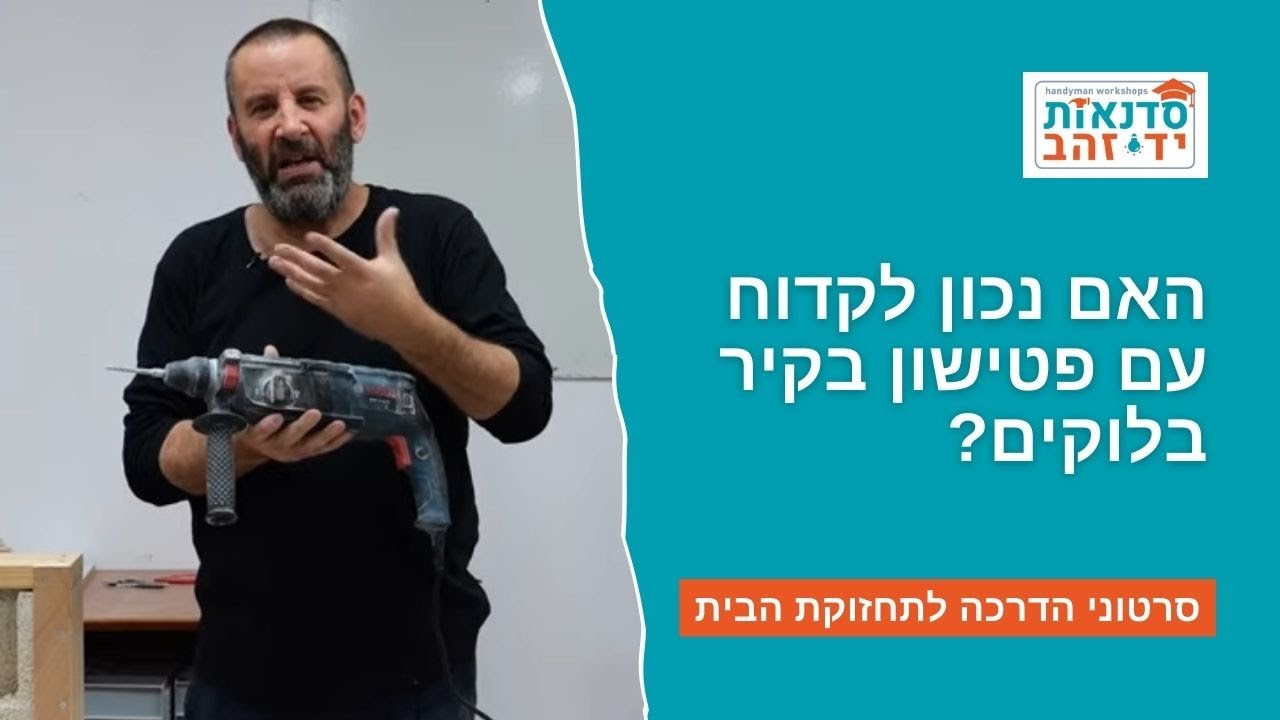סרטון הדרכה זה בודק את הטענה שקידוח עם פטישון בקיר בלוקים אינו נכון (חזק מדי...). בסרטון תמצאו בדיקה מעשית של הטענה, הפקת מסקנות, 2 טיפים באיך לקדוח נכון, ולסיום, המלצה. סרטון הדרכה חשוב לא/נשים שרוצים/ות לתחזק את הבית בכוחות עצמם/ן. בשביל לתחזק את הבית לבד לא צריך כישרון טכני יוצא דופן. צריך להיות אדם ככל אדם אחר שבריא בגופו. צדקי לירן מצלם תכנים מקצועיים: סרטי הדרכה מפורטים – שיעזרו לכם/ן לתקן תקלות בבית " תשאלו את צדקי - המעגל הפנימי" - קהילה תומכת עשה זאת בעצמך: www.tsidky.co.il סדנאות ידי זהב" של צדקי לירן: הקורס המקוון - קורס הנדימן / הנדיוומן המלא בדיגיטל https://yedayzahav.co.il/online-course/ קורס הנדימן/הנדיוומן - מסלול היסודות - קורסים קרובים ללמוד לתחזק לבד את הבית שלנו. גם קורס שהוא חוויה נהדרת, גם תרגול וצבירת ביטחון, גם העצמה מטורפת וגם חיסכון בכסף. https://yedayzahav.co.il/basic-course/ קורס הנדימן/הנדיוומן - מתקדמים/ות קורס המתקדמים/ות לוקח את התחומים הנלמדים במסלול היסודות ומאפשר לתרגל אותם באופן מעשי ממשי וליישם אותם, תוך התמודדות עם ביצוע בפועל של העבודה, ומוסיף עליהם עוד תחומים - של רמה מתקדמת יותר - בהם לא נגענו במסלול היסודות. https://yedayzahav.co.il/advanced-course/ סרטוני הדרכה עם צדקי לירן מעת לעת אני מצלם תכנים מקצועיים – סרטי הדרכה מפורטים – שיעזרו לכם/ן לתקן תקלות בבית. אני מעלה אותן לערוץ YOUTUBE שלי כמובן: https://www.youtube.com/channel/UCBDdHkX2JSvQMbVeFHTyeWA אודות: הסדנאות שלי, במגוון מסלוליהן, הן ייחודיות: סדנאות אחזקת הבית לגברים ולנשים. החזון שלי הוא להגיע לכל אדם, גבר או אישה, ולאפשר להם להיות עצמאיים יותר וחסכנים יותר. המטרה שלי היא לעזור לאנשים כמוך לחוות, גם דרך הידיים, בסדנא שמעצימה את הבטחון העצמי שלך, ומעניקה לך למידה חוויתית וכלים לאחזקת הבית (כלומר, המבנה עצמו - אני לא מטפל זוגי...). כל הפרטים באתר: https://yedayzahav.co.il/