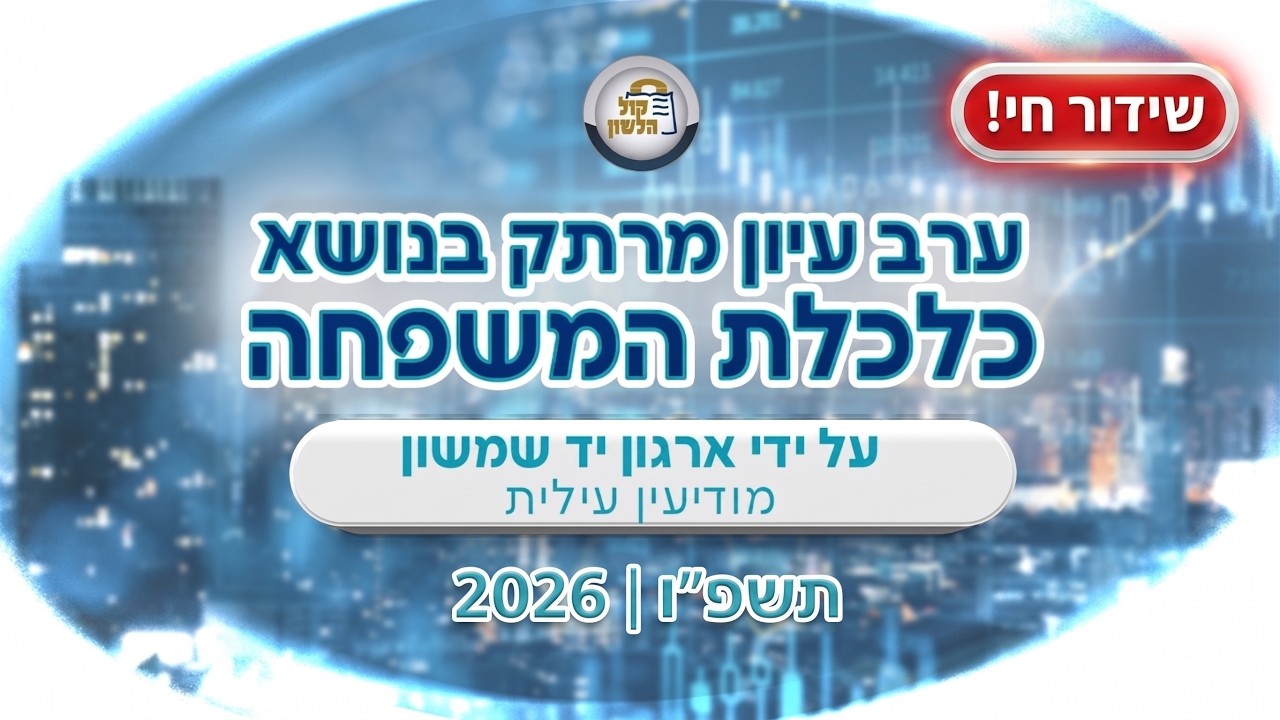 הצטרפו אלינו לשידור חי מערב העיון המרכזי בנושא כלכלת המשפחה, בהגשת ארגון "יד שמשון" במודיעין עילית. 🏡📈