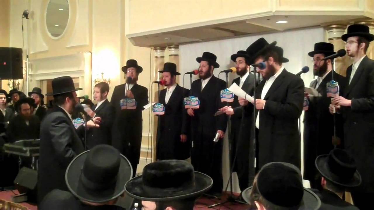 Shragy Gestetner with Mezamrim Choir led by Chilu Posen are Singing a Yiddish song Accompanied by a Child Soloist at the Rofeh Cholim Cancer Society (RCCS) Dinner in the Ateres Avrohom Hall in Williamsburg May 10 2011,