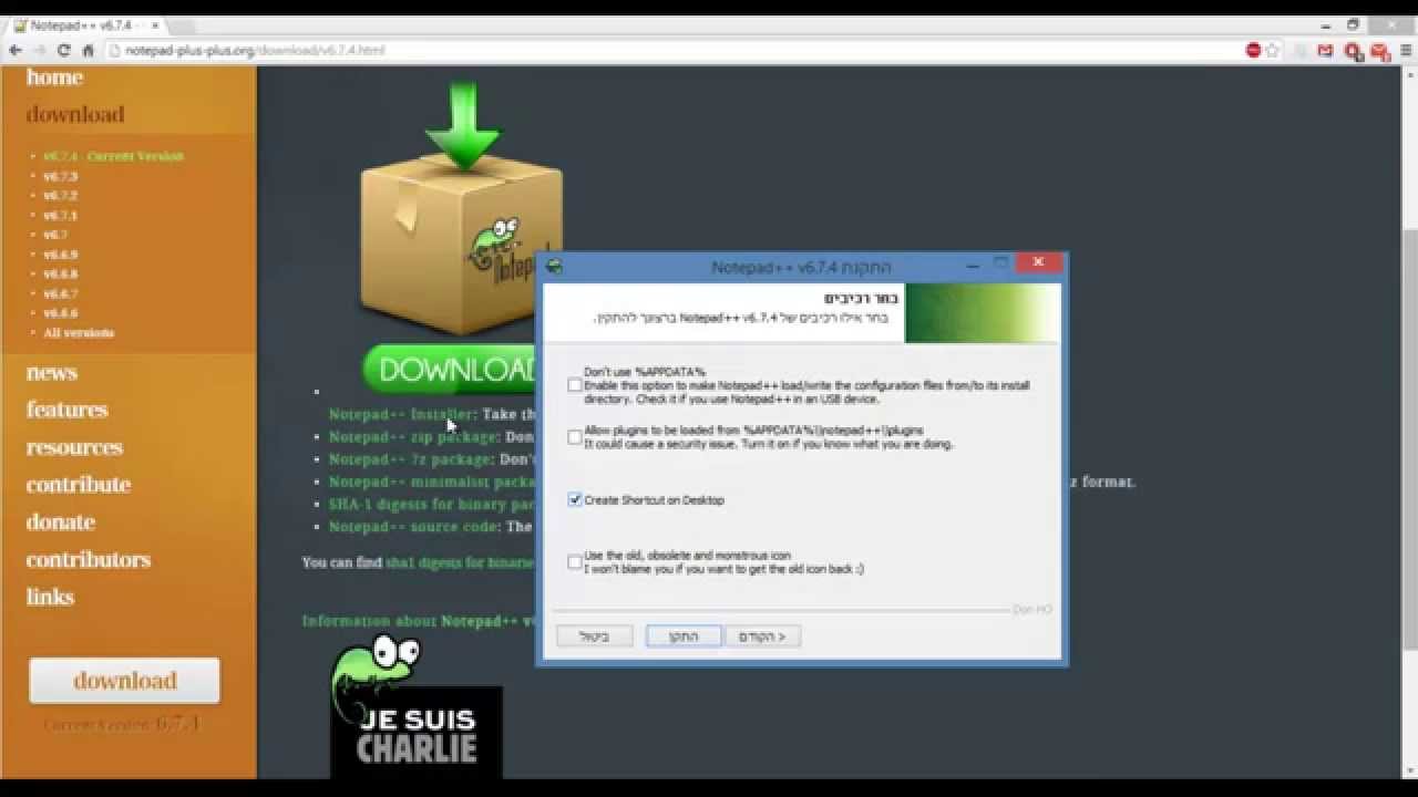 סרטון שמציג את ההתקנה של NOTEPAD++ בשביל עבודה עם HTML וCSS לתלמידים שלא הצליחו להשיג את DREAM WEAVER