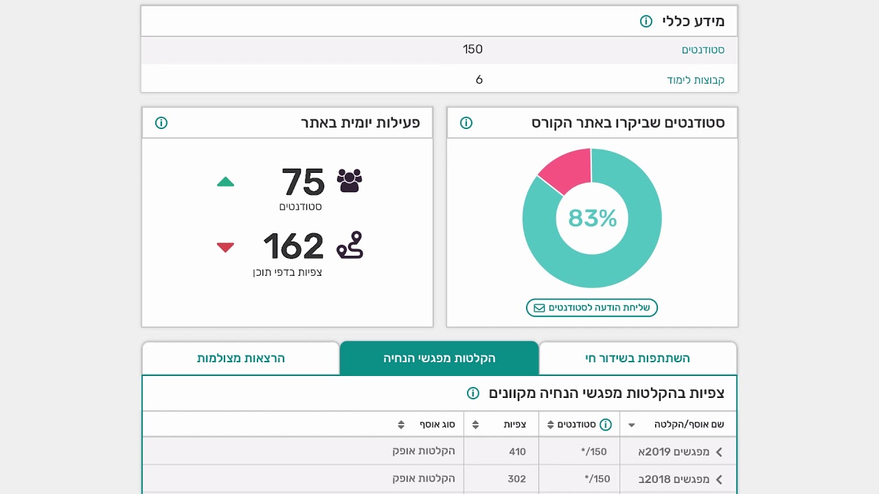 צפייה ישירה ב-YouTubeאנליטיקות למידה באתרי הקורסים