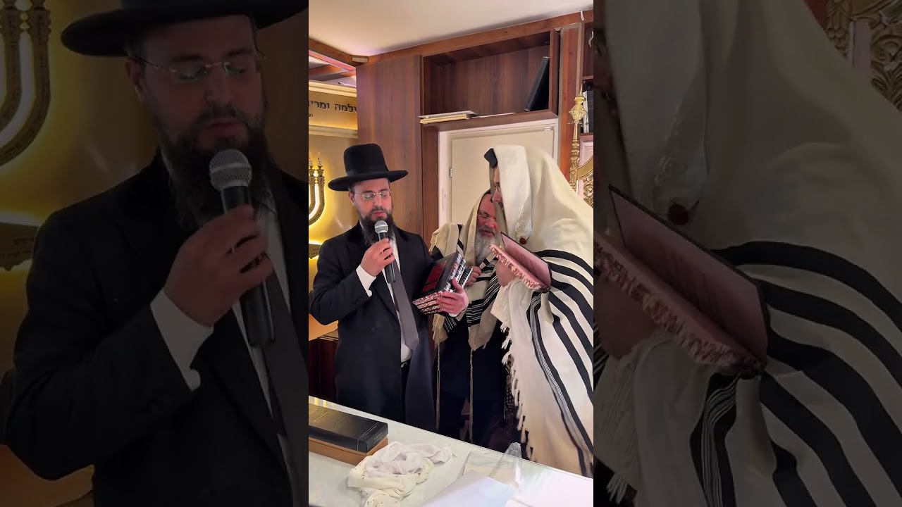 צפייה ישירה ב-YouTubeהרב שקד בוהדנה מעניק לגאון הינוקא את הספרים שלו