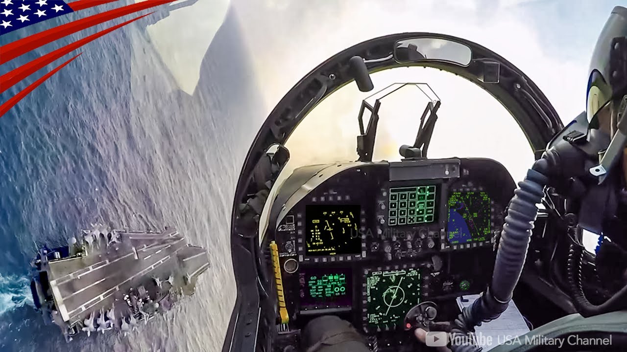 #fighter #aircraftcarrier #cockpit Cockpit footage of the U.S. Navy's F/A-18 Super Hornet carrier-based fighter jets. Click here to Subscribe USA Military Channel: https://www.youtube.com/subscription_center?add_user=UsaMilitaryChannel Film Credits: U.S. Navy video The appearance of U.S. Department of Defense (DoD) visual information does not imply or constitute DoD endorsement.